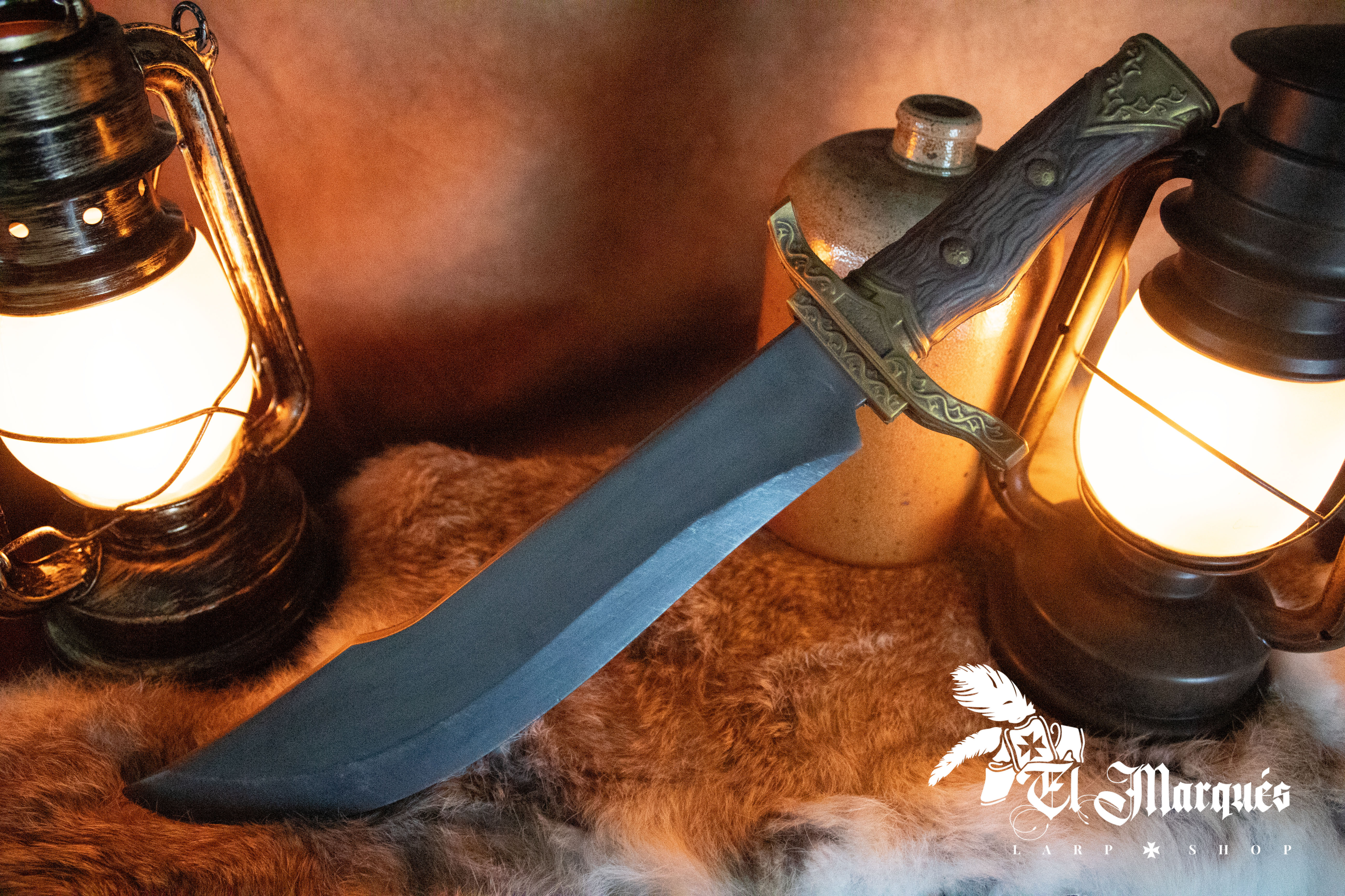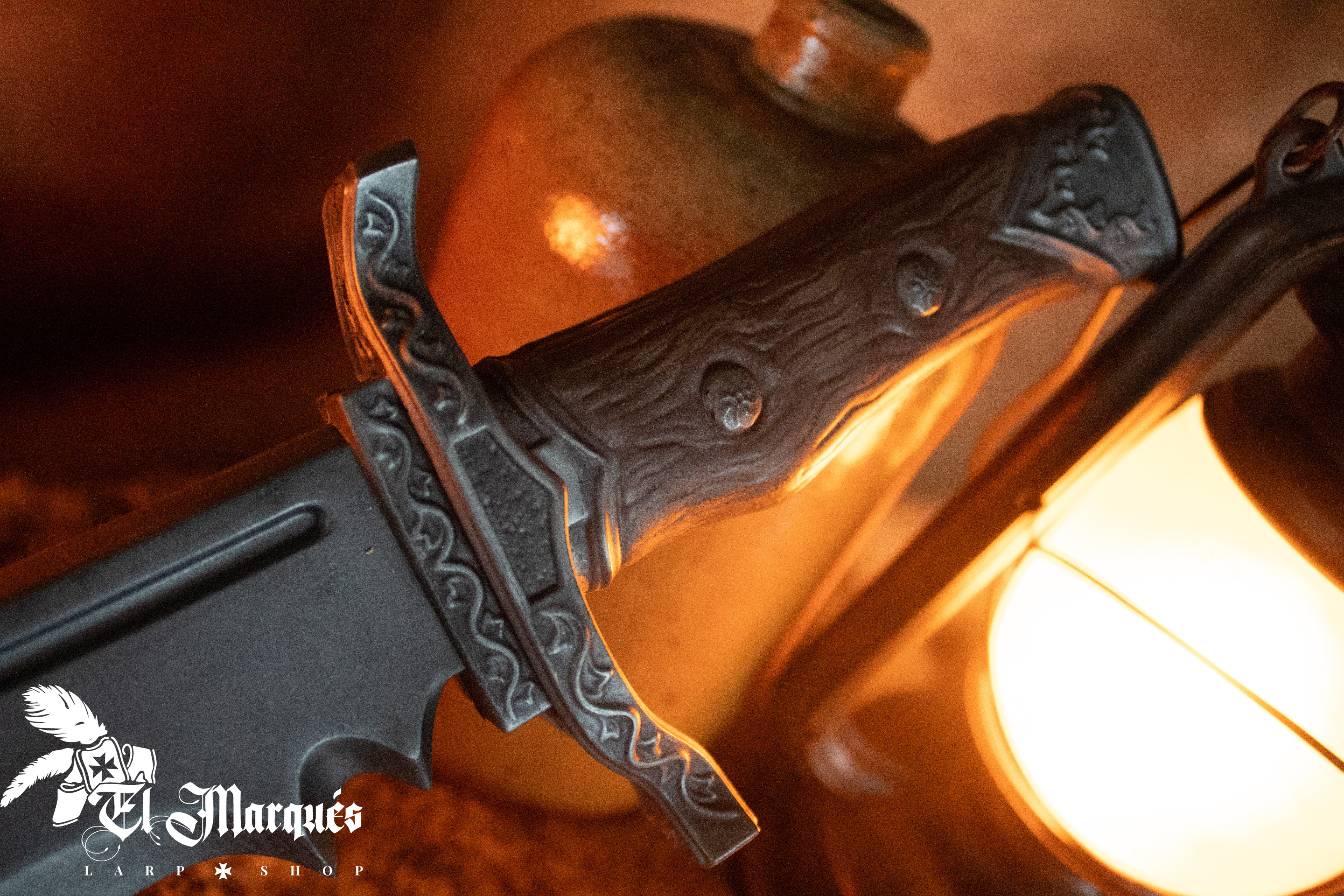 The handle, finished in wood imitation, stands out for its attention to detail, including visible grooves and metallic decorative elements that evoke a historical and fantasy-laden aesthetic. Additionally, its ergonomic design guarantees a solid and comfortable grip, providing you with the precise control you need in every battle. The connection between the blade and the handle is robust, ensuring great durability. All of this is manufactured in Spain for optimal quality.