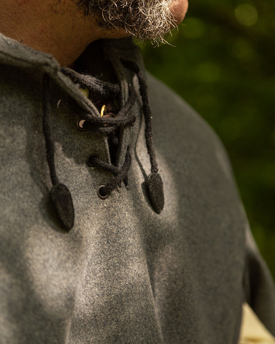 The generous hood protects from sun, wind and rain. A strong cotton cord closes the versatile ""Raven"" cape at the neck. Whether on excursions, during the night watch or at the market, the ""Raven"" cloak always ensures a comfortable climate and gives you a feeling of well-being.