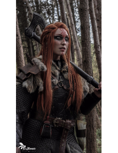 If you are passionate about the world of live action role-playing (LARP), historical reenactment, or themed events, the Viking warrior cape Fenrir from El Marqués del LARP will be your perfect ally. Made with authentic natural rabbit fur, this piece stands out not only for its quality but also for its carefully crafted details. The engraved leather plates and the aged-effect strap give it a rustic and genuine air that will evoke the raids of your Viking clan.