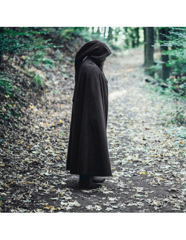 Long medieval cape with buckle closure, Lorenz model, black, 160 cm.