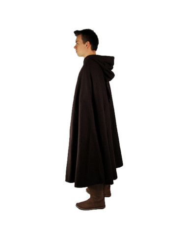 Short medieval cape with buckle closure, Ilmar model, brown 160 cm.