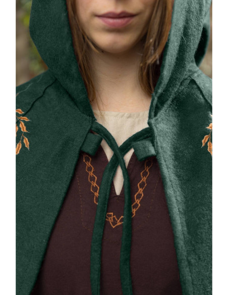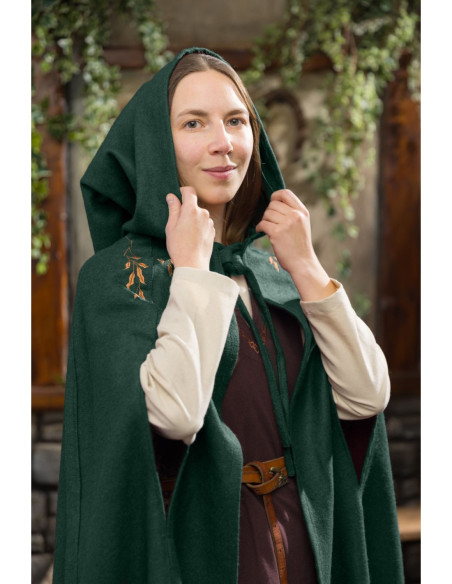 We resolve your doubts about this product: Aric medieval cloak in green felt with hood and embroidery