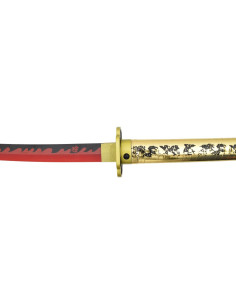 The golden-finished hilt, which showcases engravings that add authenticity, offers a comfortable and aesthetically pleasing grip. Additionally, the tsuba, with its distinctive black design and golden details, not only protects your hand but also complements the classic elegance of the katana.