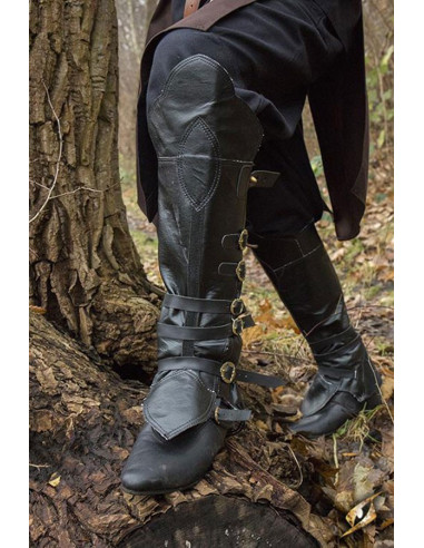 Ready to elevate your medieval style with authenticity and functionality? The Theoderic Savages' medieval gaiters, made of black suede, are the perfect complement for any adventurer looking for protection and elegance on their journeys.