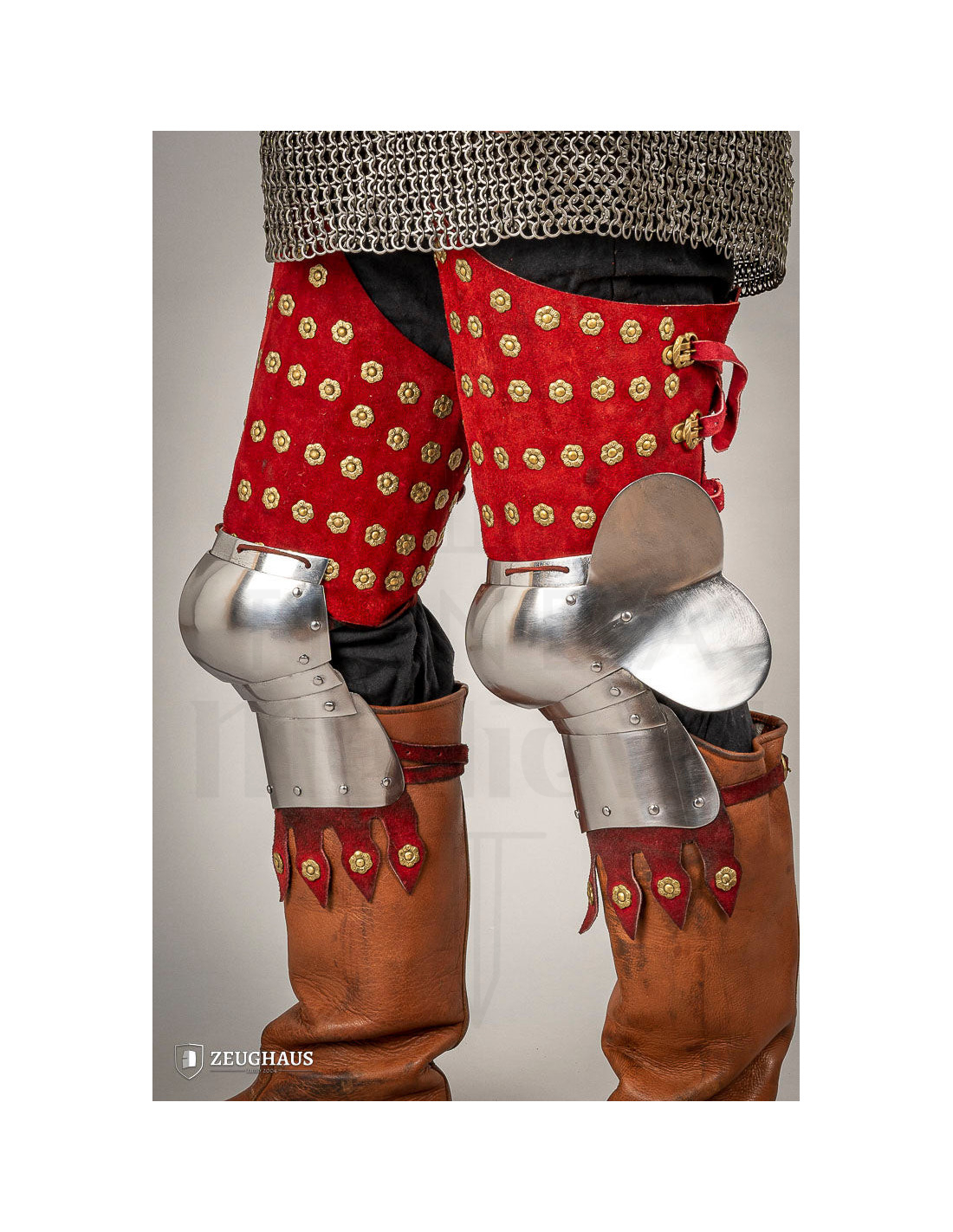 Protect your legs like a true medieval knight with the Medieval Steel Leg Protection from the XV century. These impressive armors are designed to be part of the armor of that era and offer maximum protection. The harness set consists of a pair of connected greaves, fan plated poleyns, and cuisses, providing full coverage for the upper and lower leg, as...