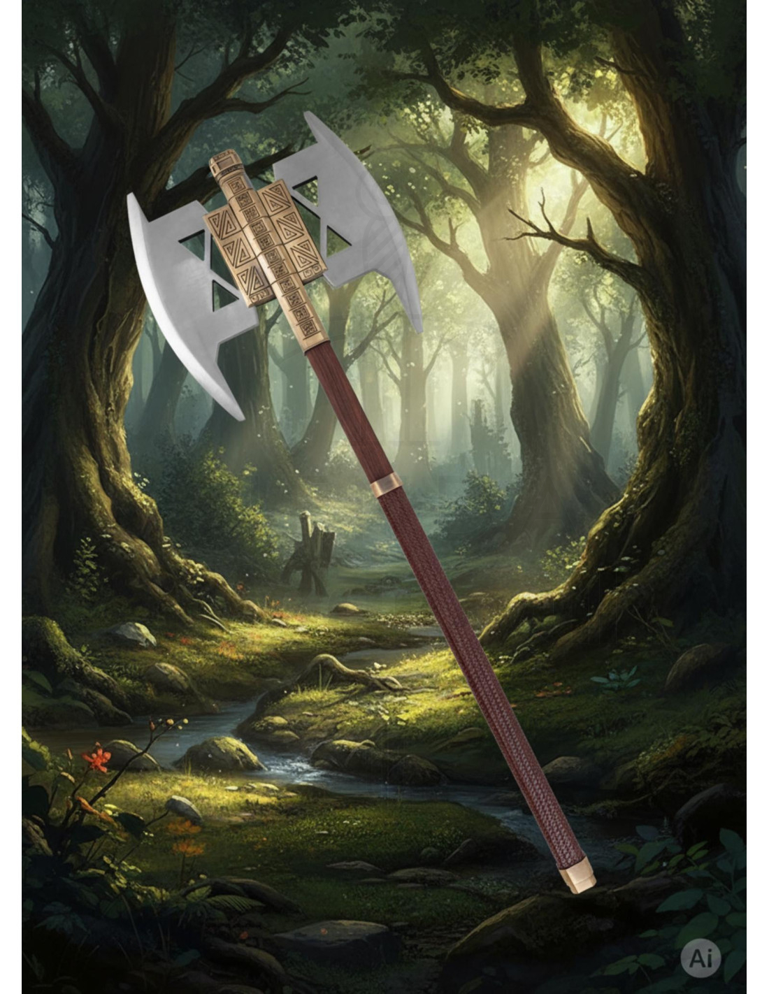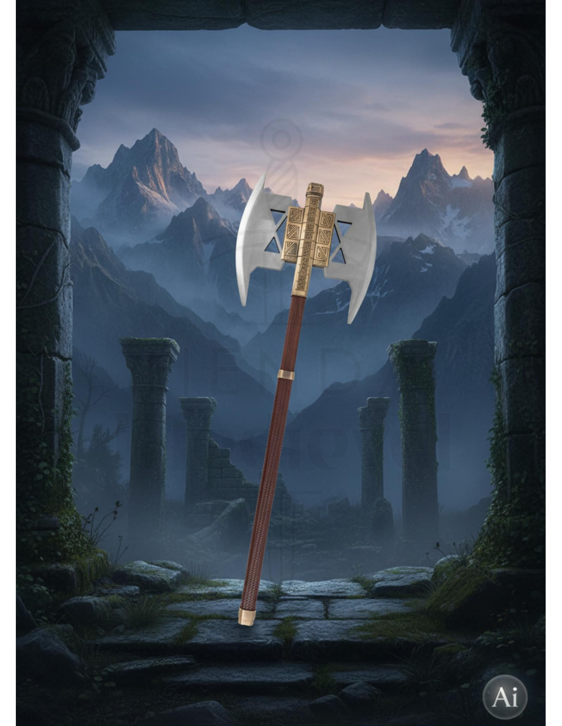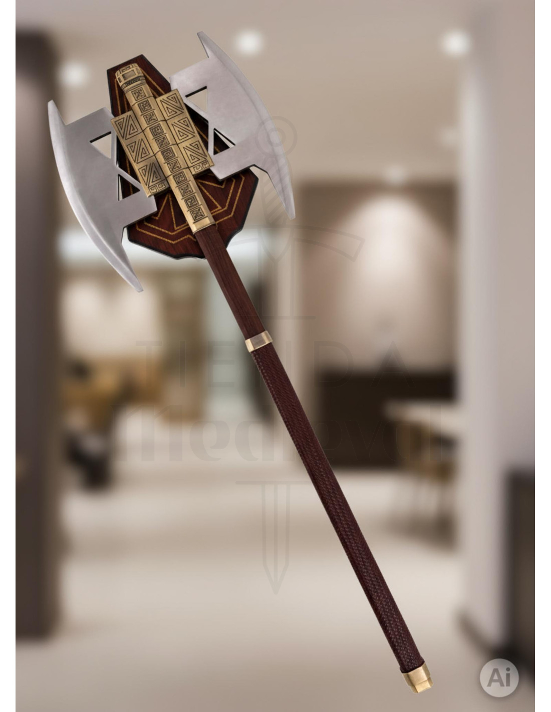 In addition to its decorative value, this piece includes a stand that facilitates display and enhances its visual impact. Its weight of 4476 grams ensures a solid, high-quality feel, ideal for collectors and fans of the saga who want to complement their environment with a medieval and fantastic touch. Although not official, its finish and style evoke the adventures and battles of Tolkien's universe, making this axe a unique element for decoration, cosplay, or as a themed gift.