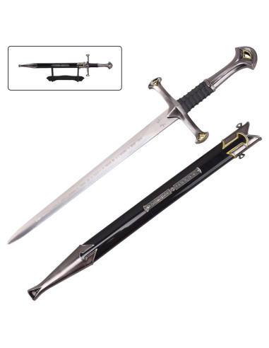 If you're interested in purchasing the Unofficial Anduril Mini Sword of Aragorn - The Lord of the Rings, you will find an object designed for display, not for rough use: the crafted finish and golden embellishments act as a visual magnet, ideal for those looking for a piece that speaks of passion for the saga and good decorative taste.