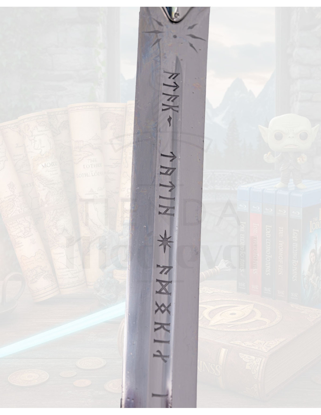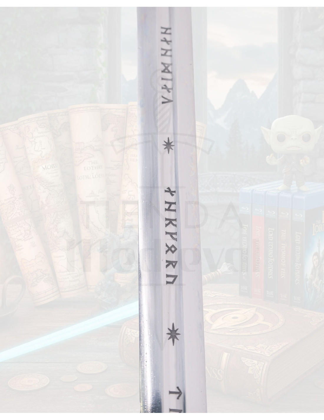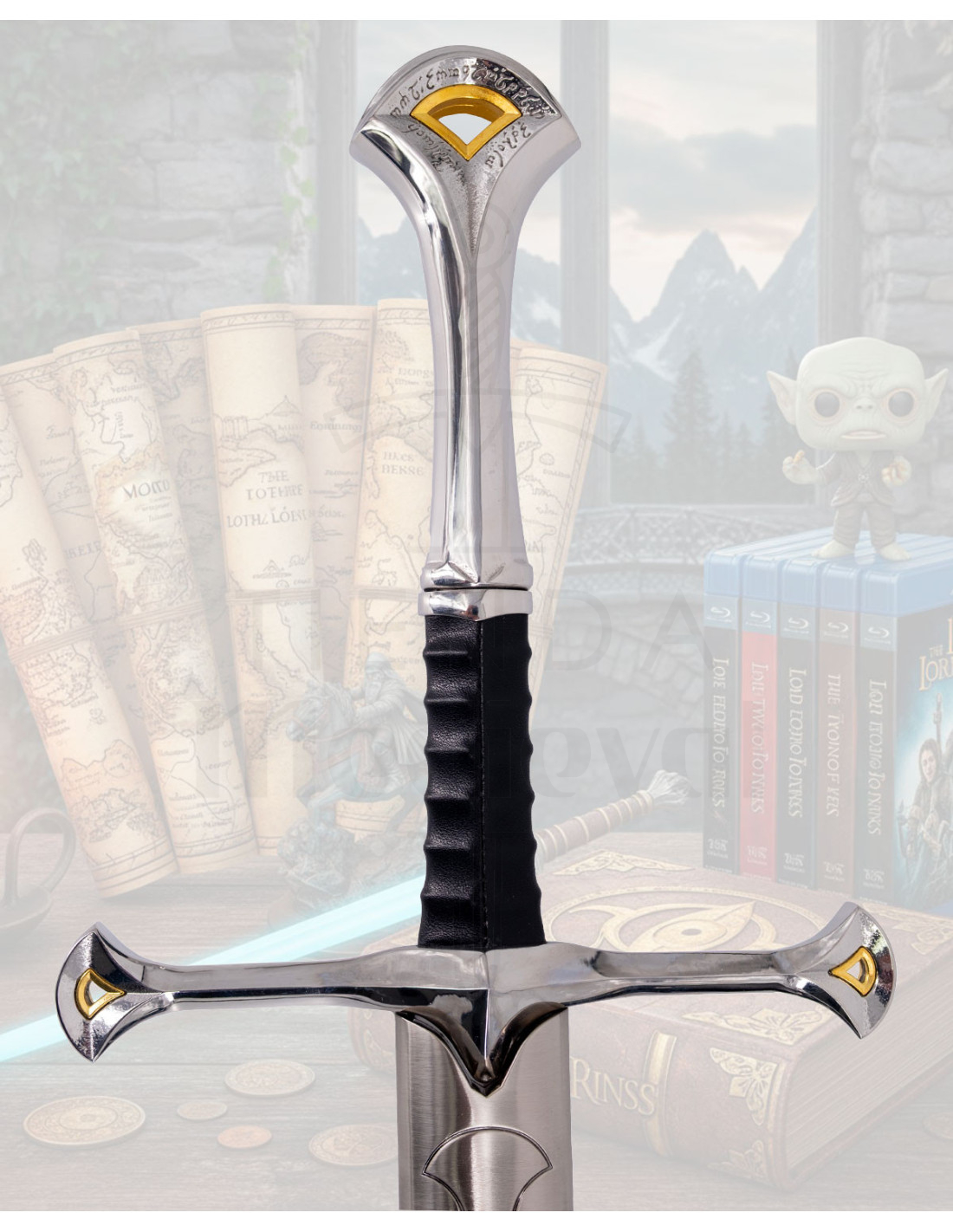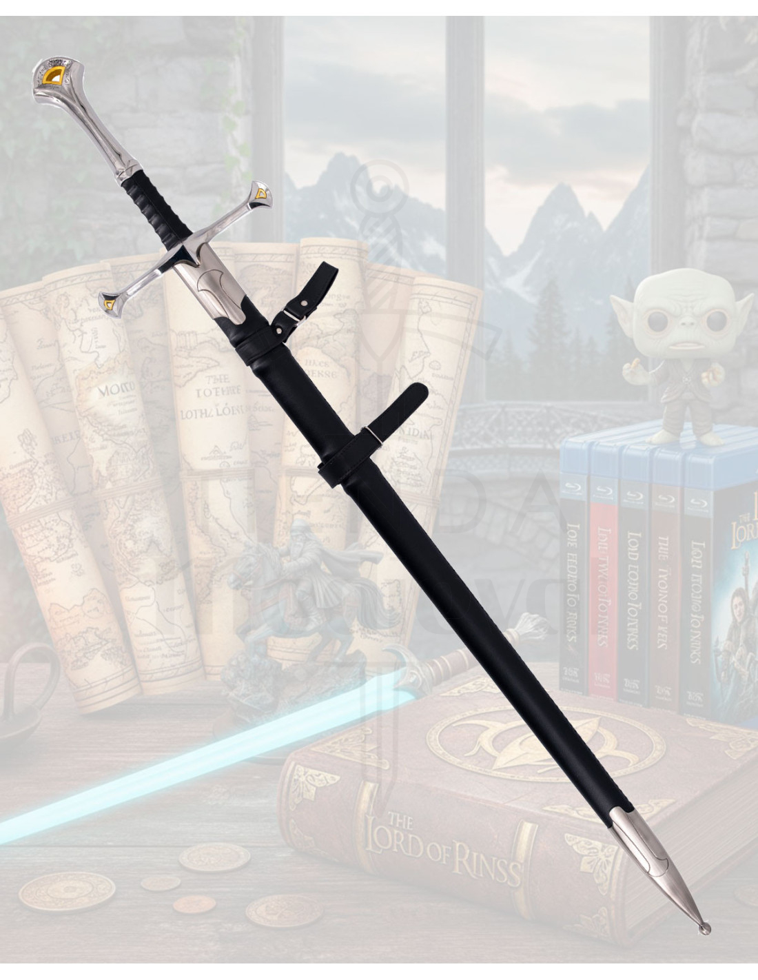 If you are attracted to the universe of The Lord of the Rings, this replica evokes the symbolic strength of a sword forged for leaders and heroes, an object loaded with presence that connects with the mythology and aesthetics of the saga.