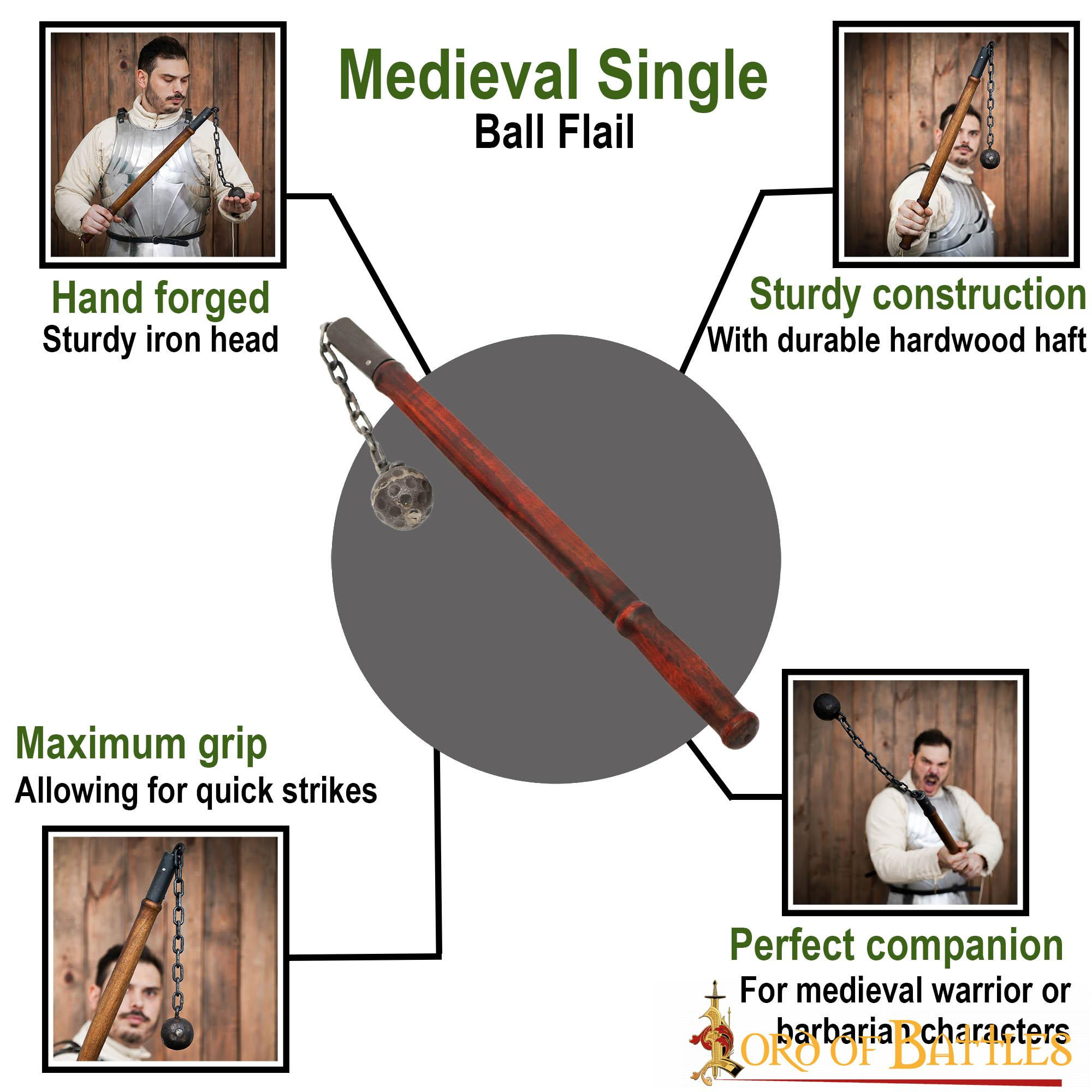 Whether you collect medieval weapons or seek to strike fear into your adversaries, this mace is an exceptional choice. Take advantage of its robustness and power in battle, and prepare to dominate the battlefield. Add the Medieval Mace with Chain and Ball to your collection today!