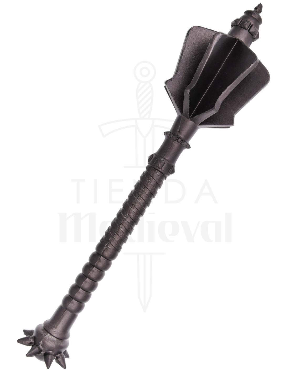 With Malrik in hand, you carry not just an accessory, but presence: its dark finish and broad surfaces with crown-shaped tips create a threatening silhouette that draws all eyes and reinforces your role, whether you are an imposing knight or a ruthless mercenary. The detailing on the studs and the angled faces on the opposite end provide a sense of visual authenticity that works perfectly in staged combat and displays.