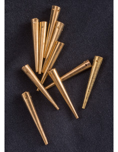 Historically, the stringless aiglets that we offer here can be dated to the early Middle Ages. If you are a lover of historical reenactment or are simply fascinated by the medieval world, these shiny brass aiglets are an ideal accessory to add authenticity to your period clothing.