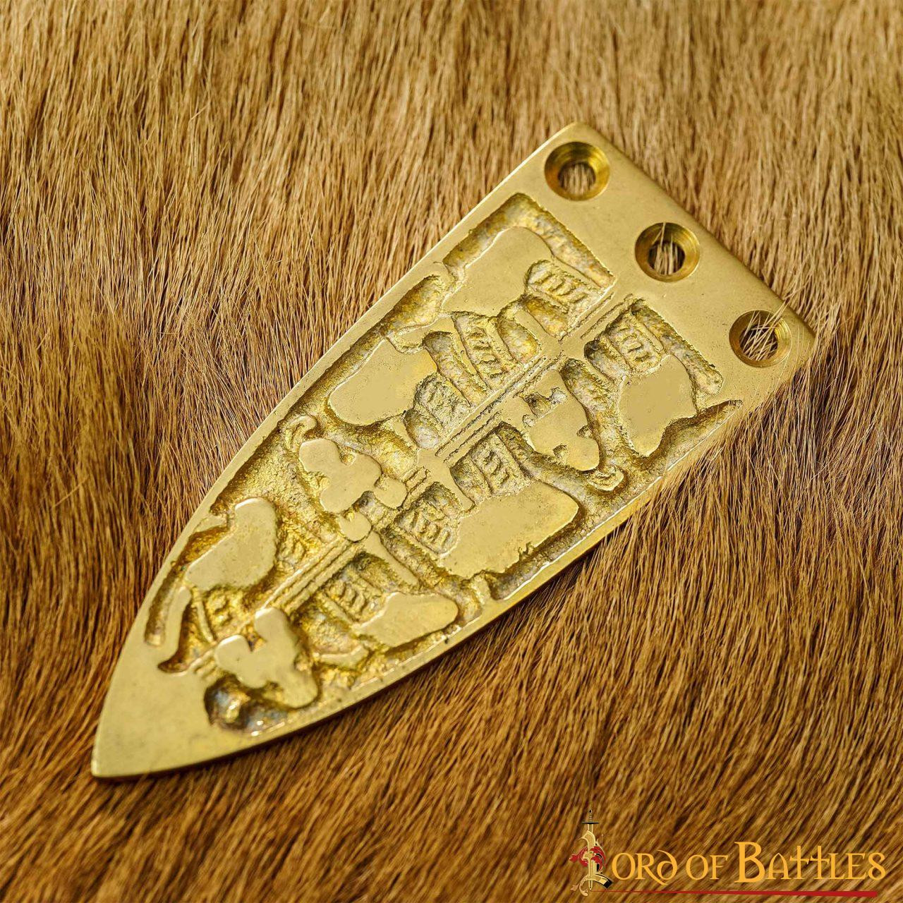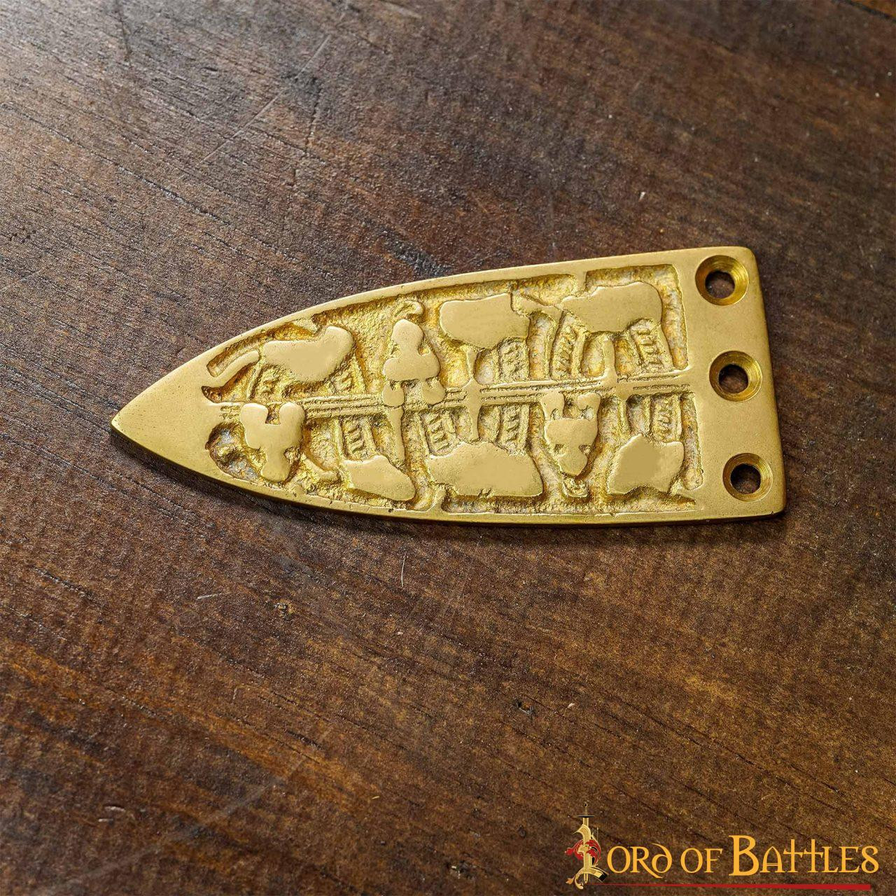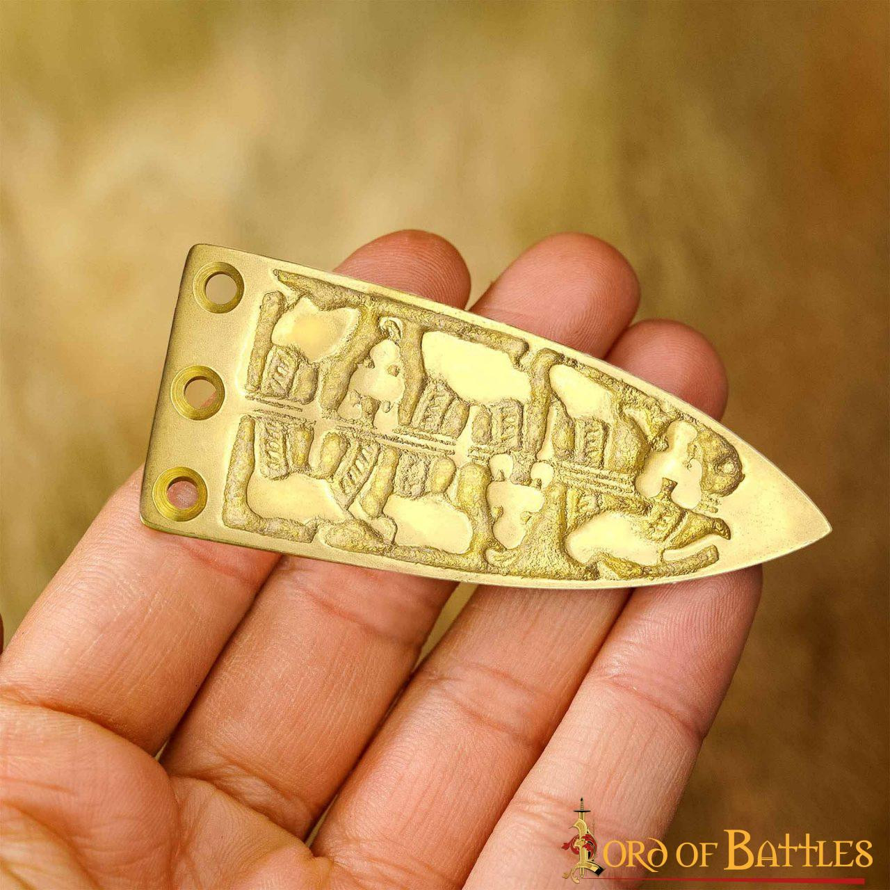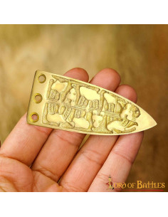 Decorative viking belt tip in brass