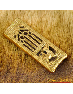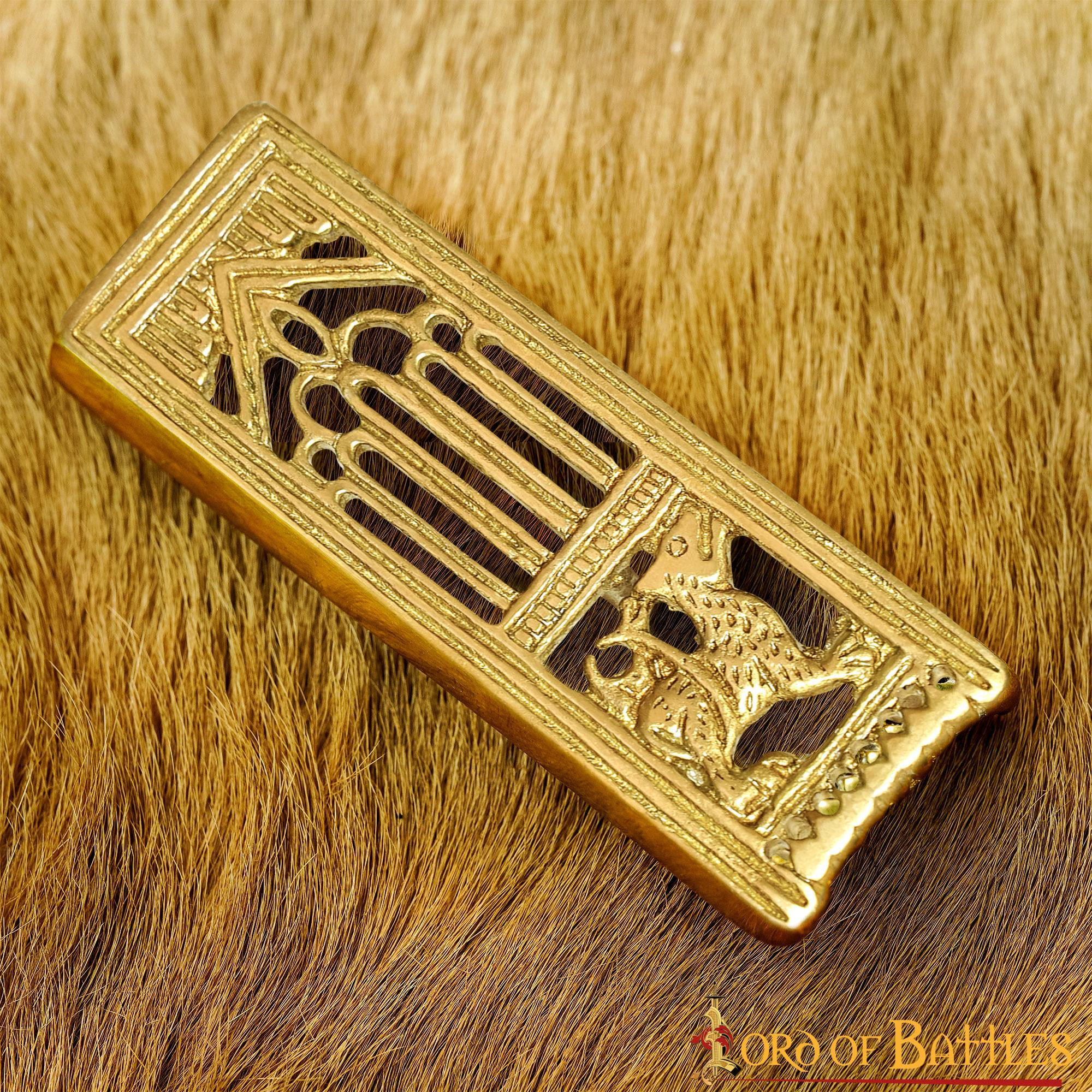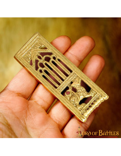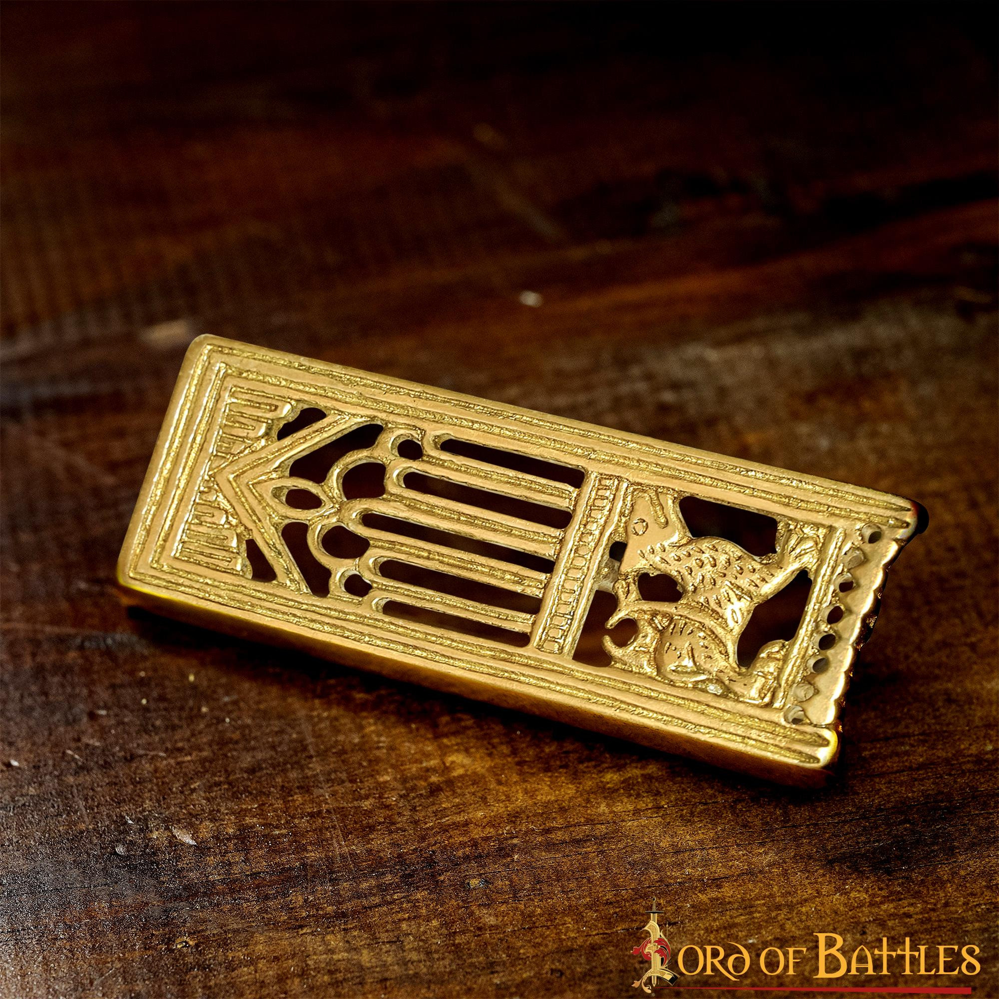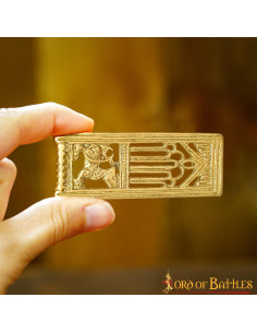 Take your medieval style to the next level with our decorative brass lion belt accessory! Why settle for basic, non-historical accessories for your belts when you can have this stylish Fenrir-inspired belt trim. Whether it's for a historical re-enactment or a museum visit, this trim blends seamlessly with any outfit of yours!