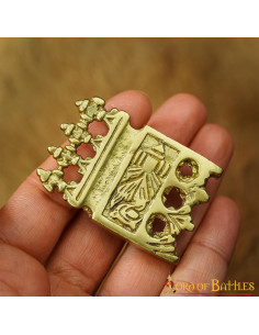 Do you want to give your outfit a medieval touch? Then this set of 5 Viking and medieval belt decorations is perfect for you! These ornaments are made of high quality solid brass and are inspired by the belt ornaments of King Eric of Pomerania. They are perfect for adding a touch of authenticity to your medieval re-enactment costume or for any other event.