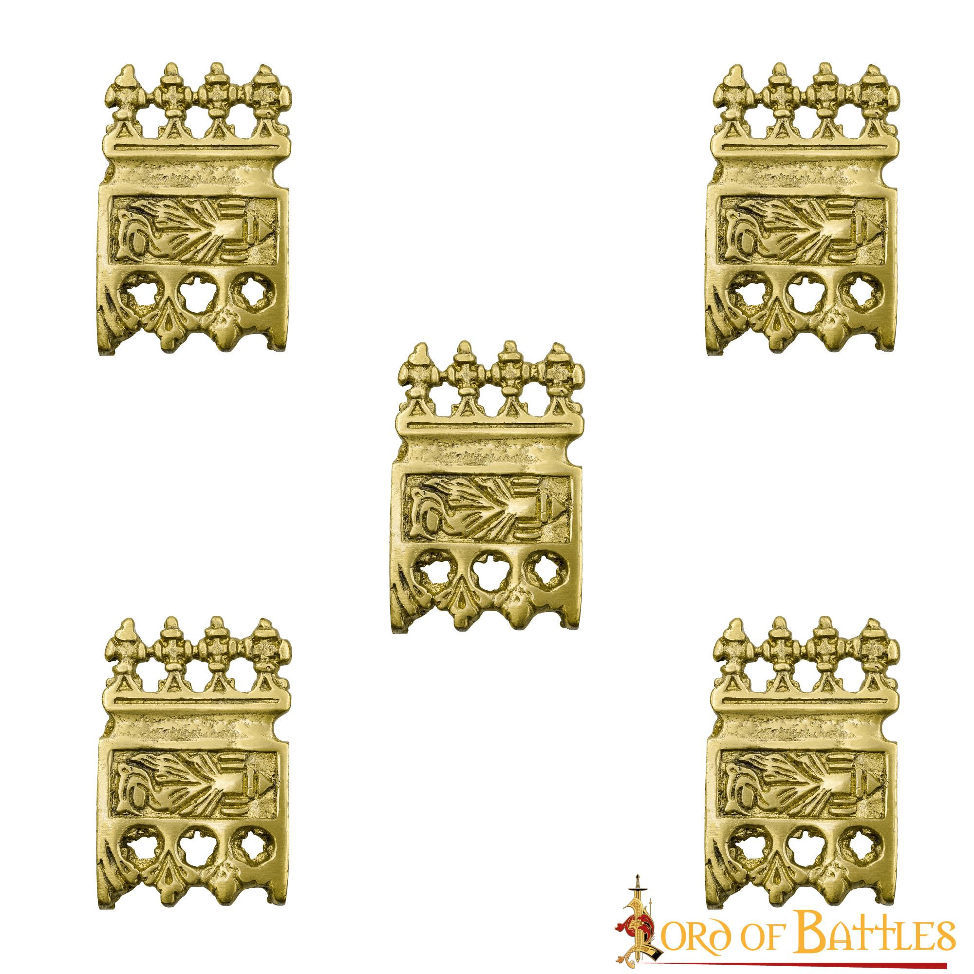 Set of 5 brass-plated Viking and medieval ornaments for belts