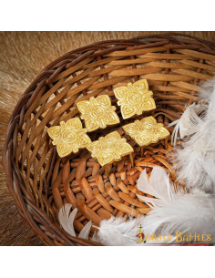 This pack of 5 solid brass Viking belt ornaments is the perfect choice to give an authentic and distinctive touch to your belt. Each ornament is 1.9 x 1.9 cm in size, making them ideal for enhancing your Viking outfit. Here are the highlights of this set: