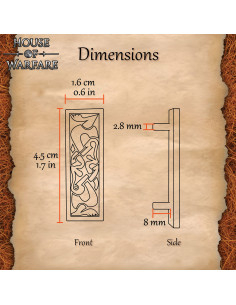 Cast in solid brass and finished with an aged patina that enhances every line, the plate features an intertwined relief that stands out at a glance, giving an authentic and crafted appearance, far from cheap imitations. The patina creates a visual contrast that makes the motifs look carved into a panel, adding depth and character to your kit.