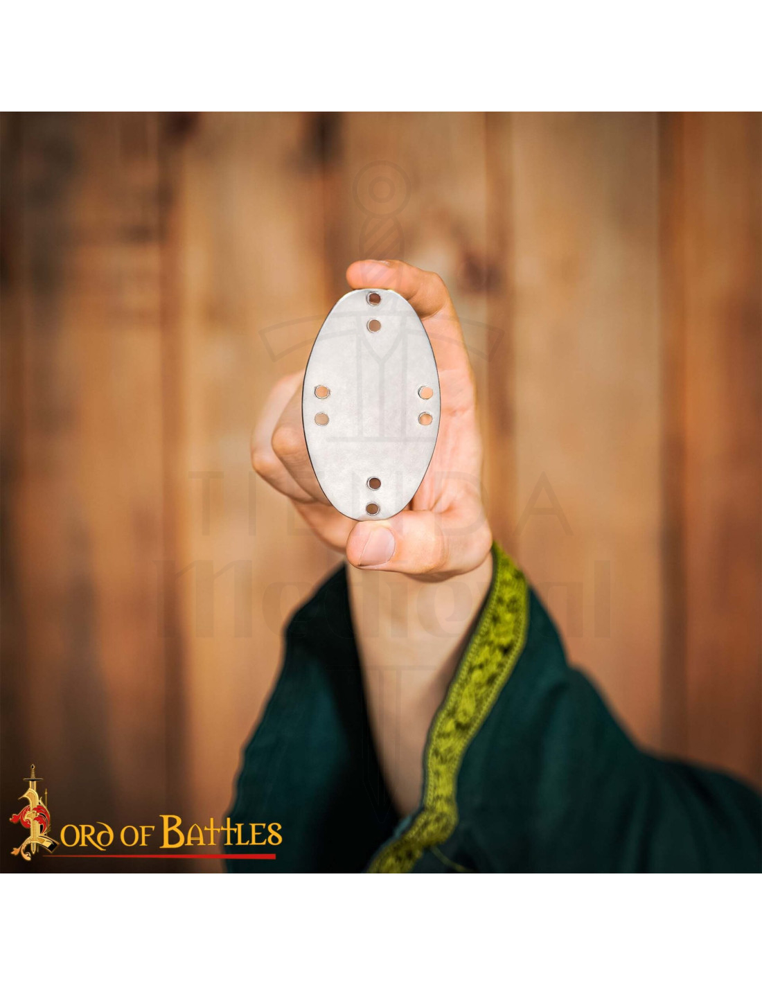 The plates in the Set of 25 Laminar Steel Plates for Armor are designed so you can construct your own laminar armor with a result true to the Visby style, inspired by archaeological finds in Gotland. Each plate, handcrafted from sturdy mild steel, offers solidity and a matte finish that retains that historical and lived-in look you seek in recreations or display projects.