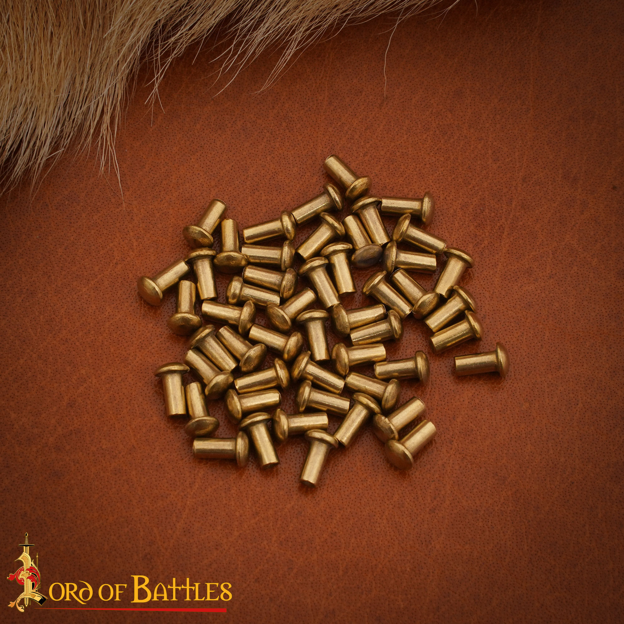 Set of 25 Brass Rivets with Mushroom Head (6 mm)