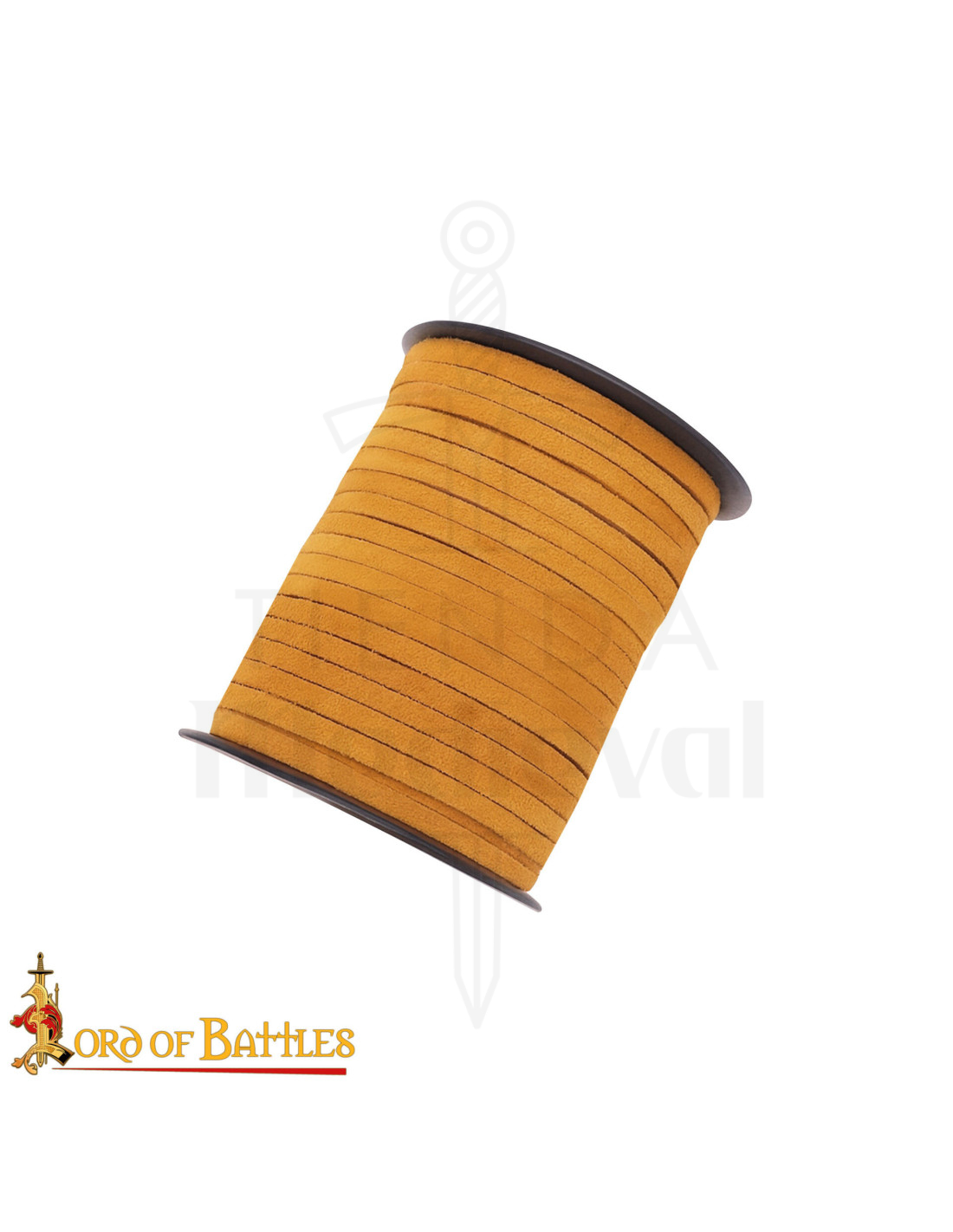 The photograph shows the cord neatly wound on a dark spool, making it easy to store and cut to the needed length. Its suede-like texture gives a handcrafted and sophisticated finish, ideal for detailing in historical costumes, contemporary accessories, or repairs that require discretion and style.