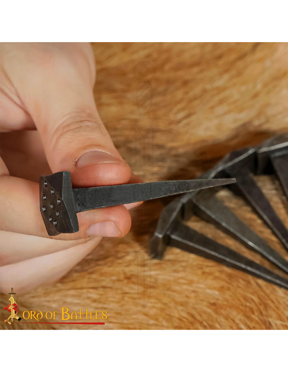 Made from durable iron, these nails not only offer unmatched durability and reliability to withstand the test of time but also infuse a rustic charm that is perfect for recreating medieval aesthetics or enhancing historical furniture. Their wide head, measuring 1.5 to 2 cm across, provides a strong visual presence that does not go unnoticed, ideal for accentuating design rather than hiding it.