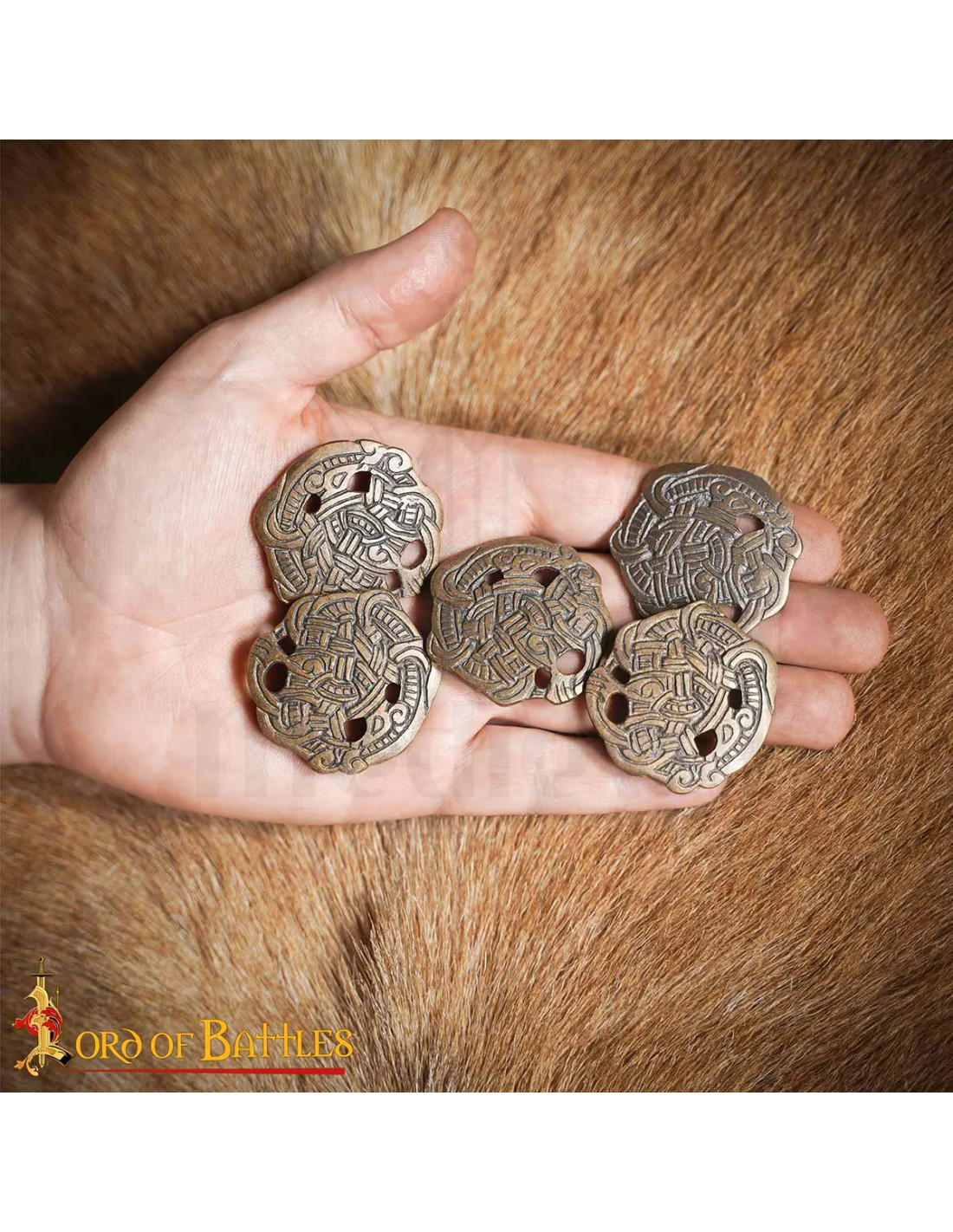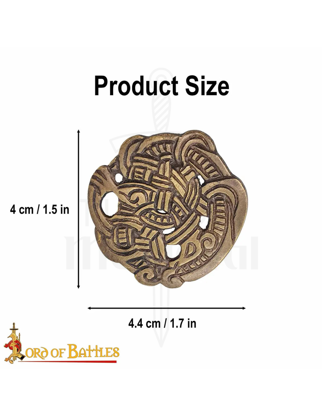 The Viking Belt Decoration in antique-finished brass stands out for its openwork appearance and intertwined motifs, which play with light and show every curve of the design. Thanks to the aged bronze tone, the reliefs gain depth and the accessory looks as if it has lived through other eras, giving your outfit an authentic aspect without complicated processes.