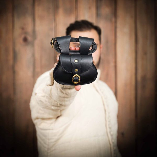 An adventurer or perhaps an unarmored knight patrolling his troops, carry your portable essentials in this reliable medieval leather bag! Just pass the flexible leather belt (together with the bag) through its loops and it will always be by your side, always more faithful!