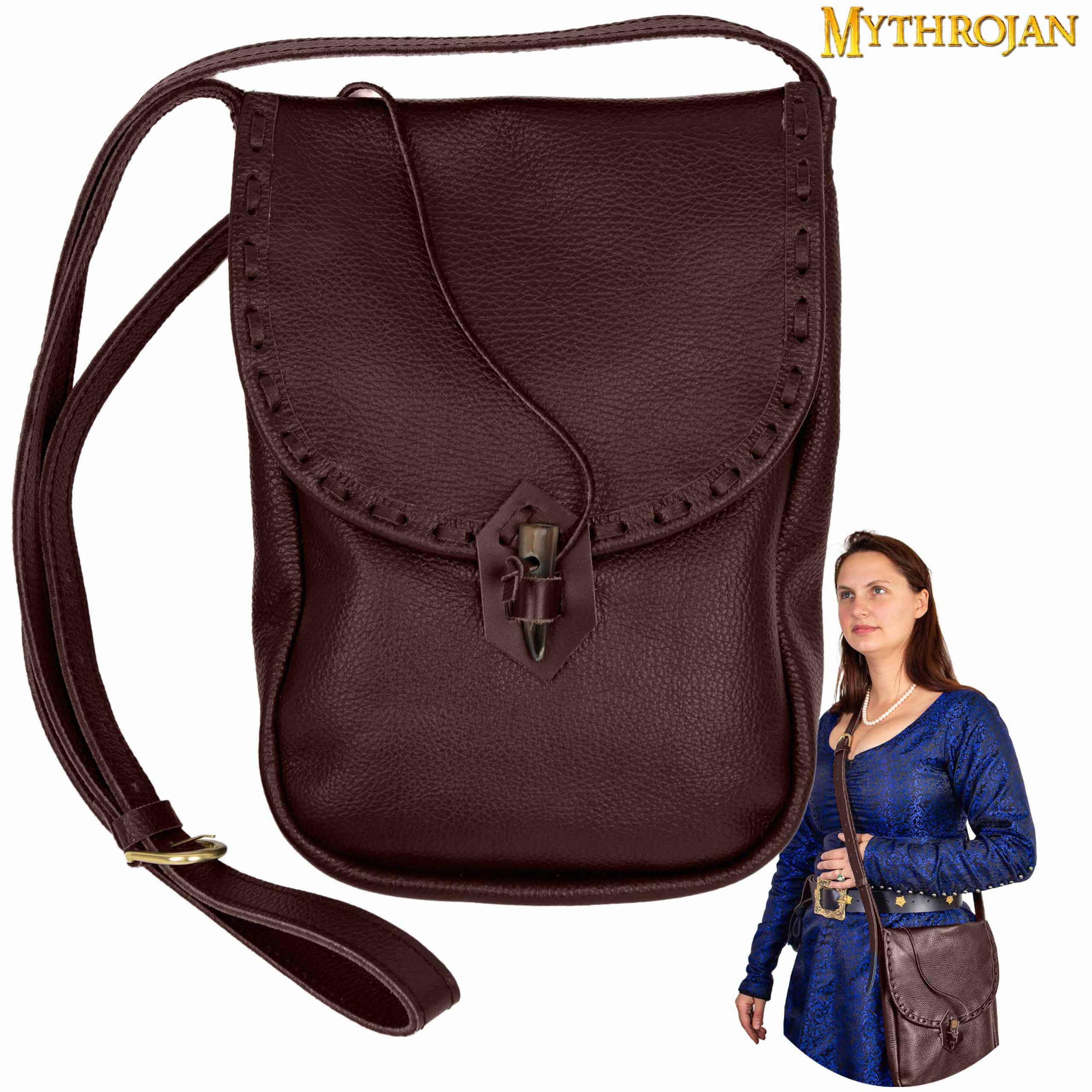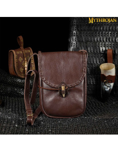 Discover the medieval brown leather shoulder bag by Mythrojan, a unique and authentic piece that will transport you to bygone times. Handmade with top quality leather, this bag stands out for its large capacity and its careful design down to detail.