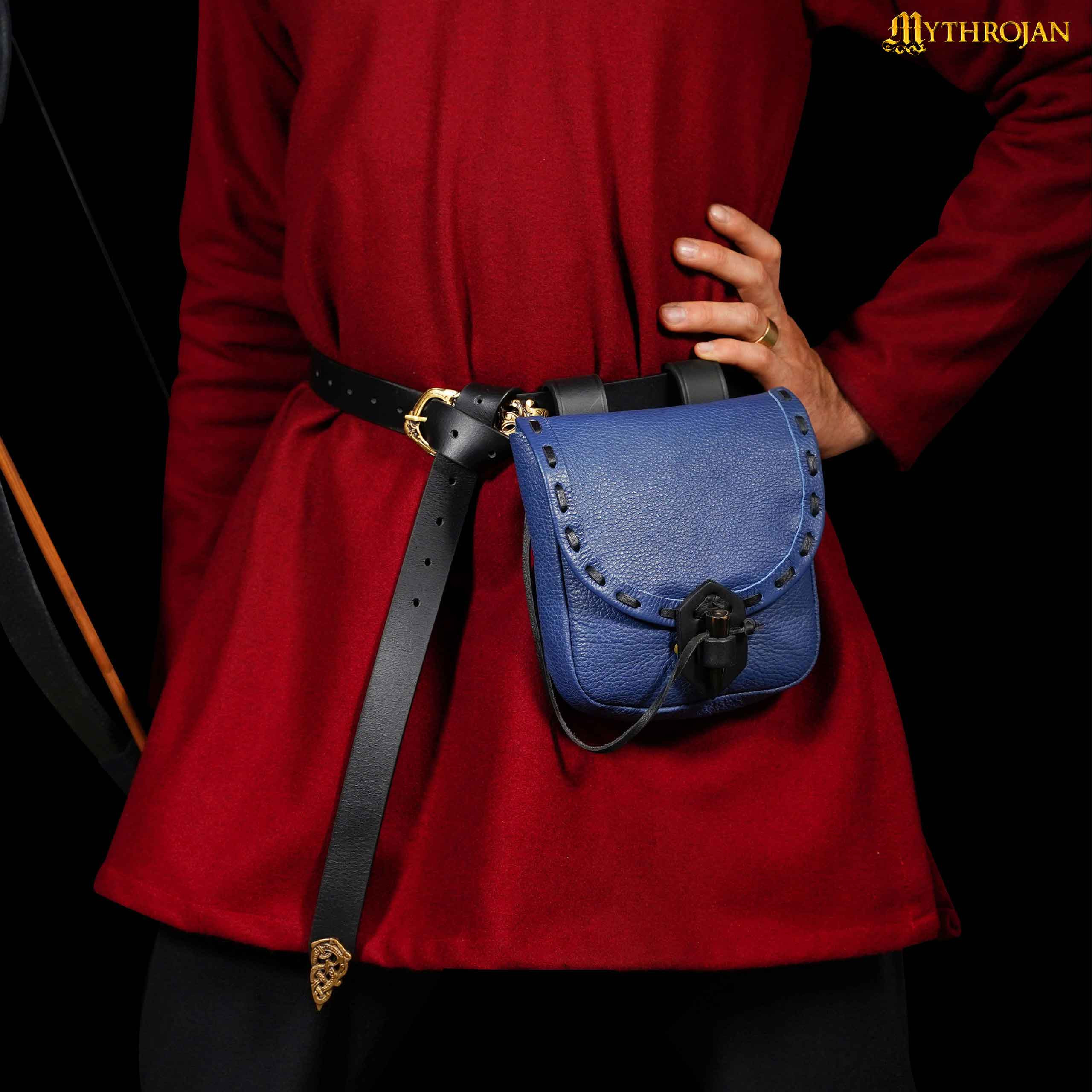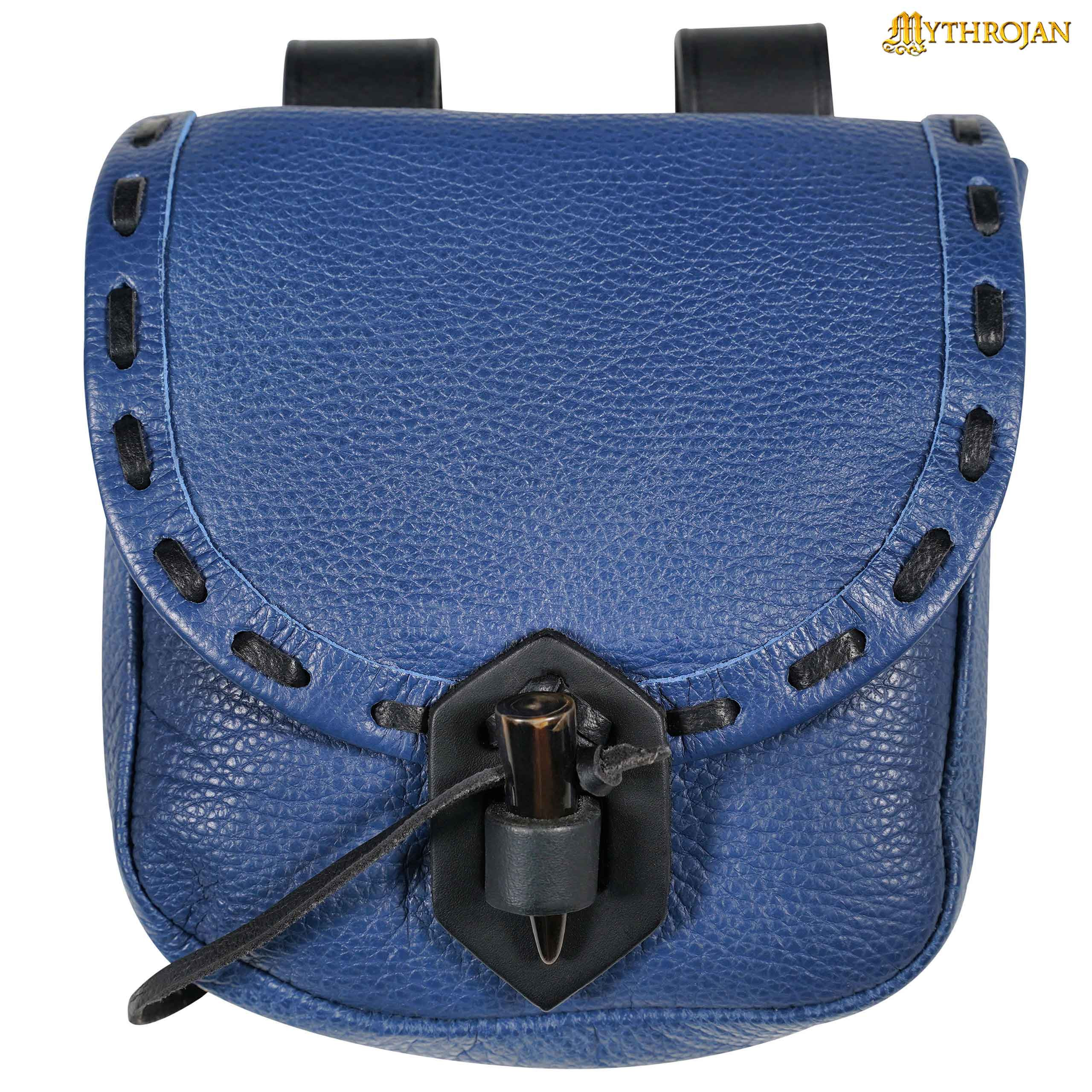 Are you looking for the perfect complement to your medieval outfit? Look no further! Introducing the medieval blue leather bag with horn closure by Mythrojan.