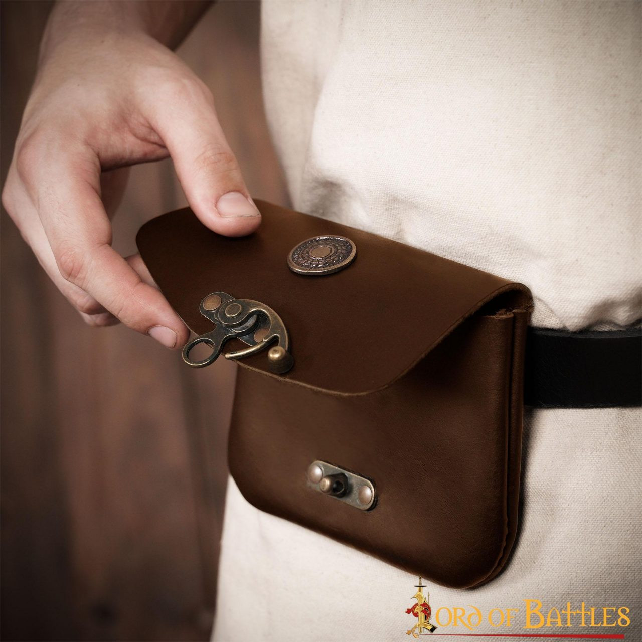 Get ready to carry the essence of history and magic with you on every adventure with our Brown Medieval Leather Bag with Brass Closure. Mark your style and be the protagonist of your own legends. Get yours now from the respected Lord of Battles brand and start weaving your own epic story!