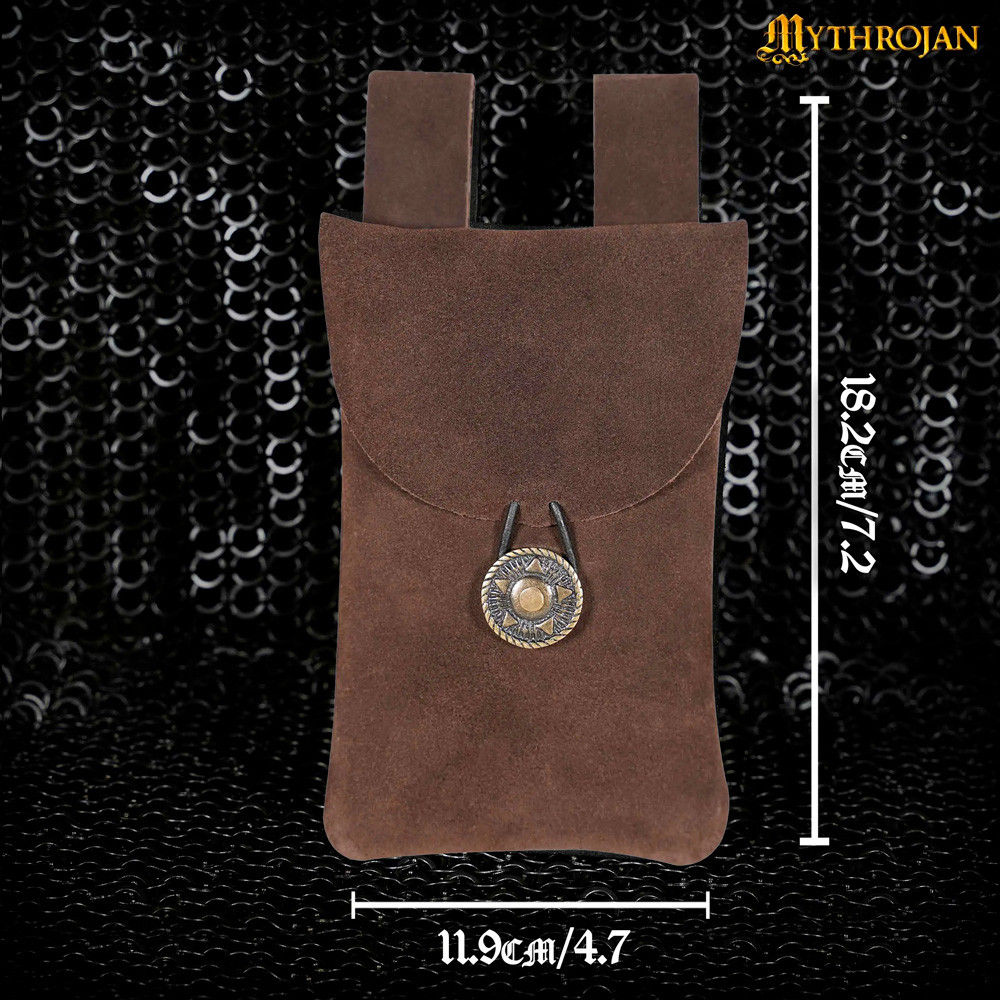 Discover Mythrojan's medieval fanny pack, handcrafted in soft and reliable dark brown suede leather. Each piece is carefully cut and handcrafted, guaranteeing the best quality suede leather available.