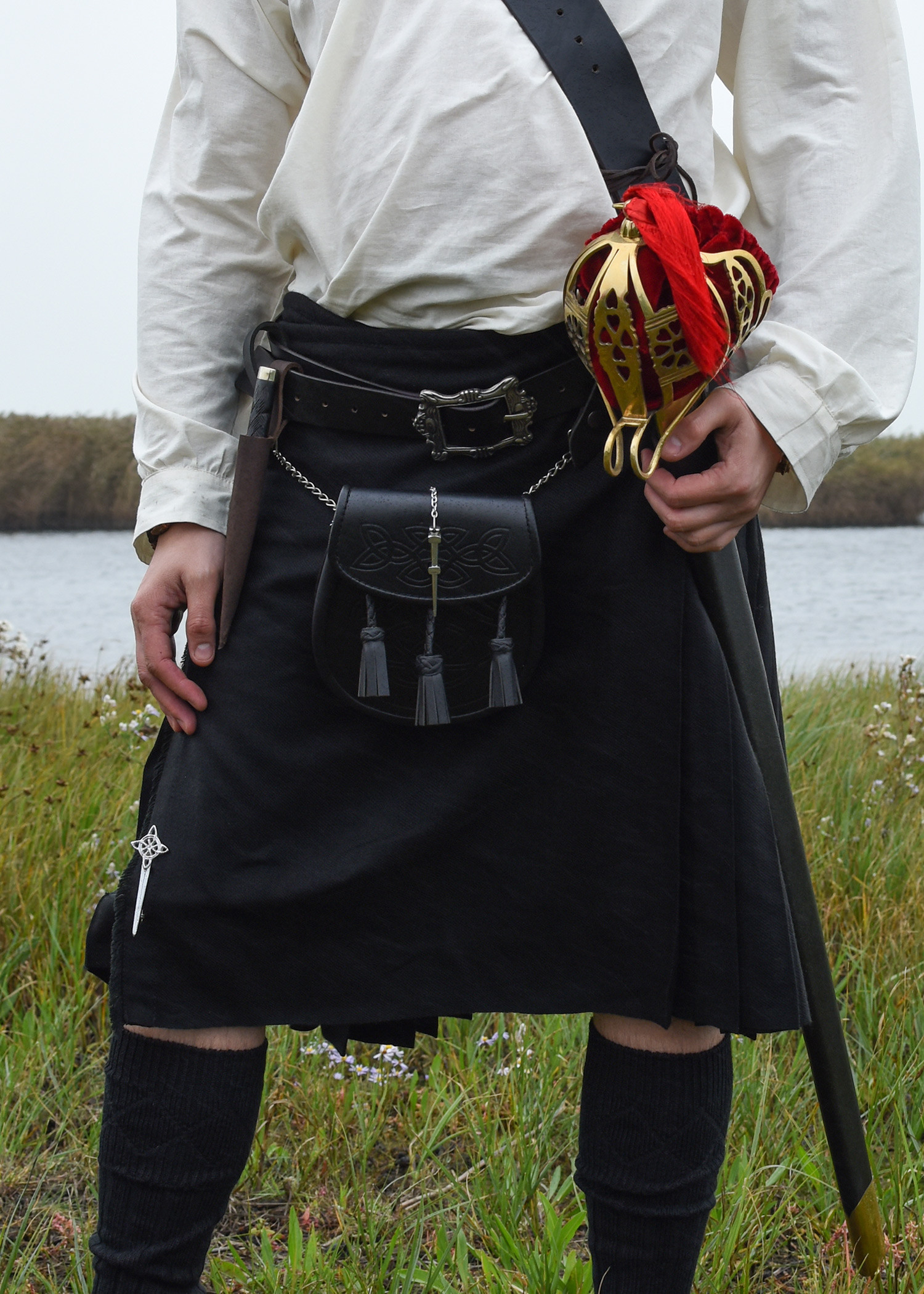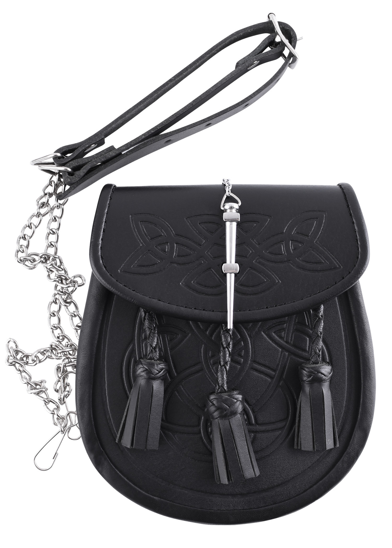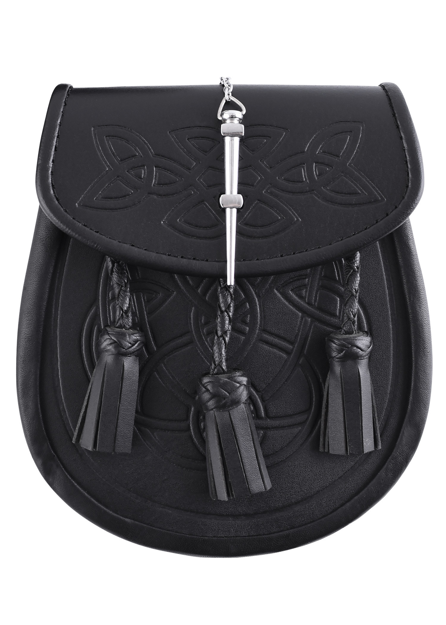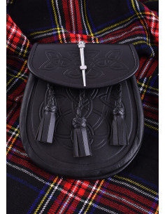 Made from 100% high-quality leather, its sturdy and durable design ensures that you can showcase it on different occasions without worrying about wear and tear. The soft texture and embossed details with Celtic motifs add a distinctive touch, reflecting Scotland's rich history and culture. The three leather tassels adorning the bottom not only enhance its aesthetics but also give it a unique and sophisticated character.
