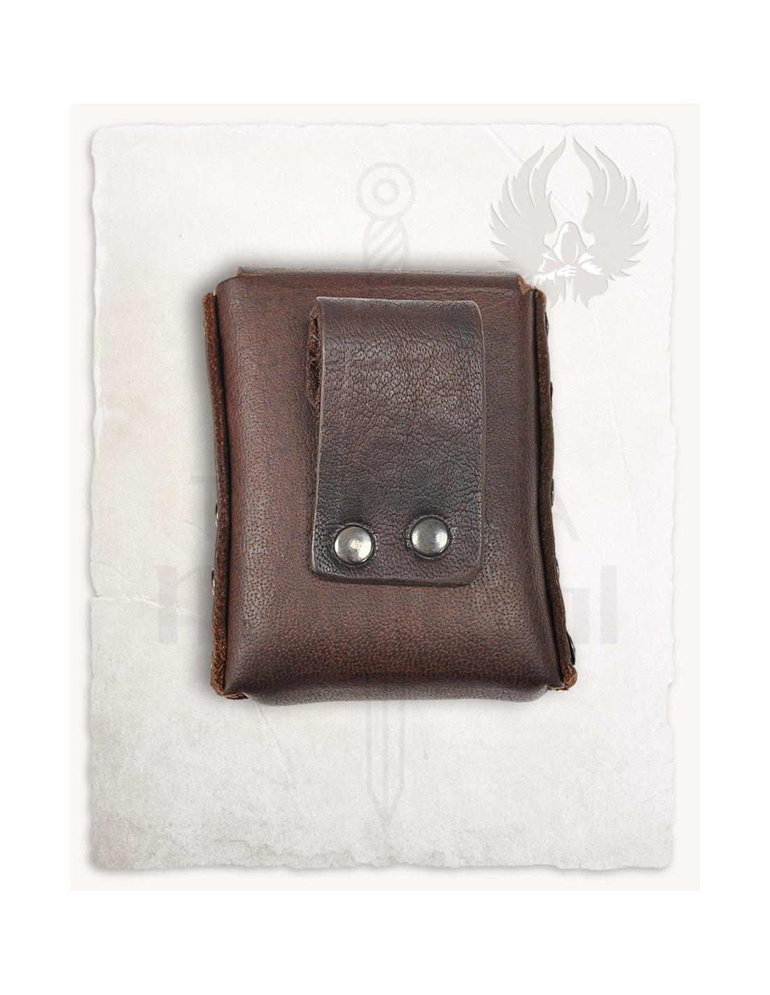 Are you looking for an accessory that combines functionality and medieval style? This leather bag model Gero is just what you need to carry your larger items practically with an authentic touch. Designed to hold everything from phones to role-playing game coins, it’s perfect for adding a unique touch to your outfit and keeping your belongings organized. Its decorative metal closure and buckle strap make it an essential addition to your belt, providing easy access and ensuring the security of your possessions.
