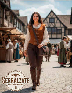 Its shoulder design allows for comfortable and practical wear, with ample space to store your essentials without losing style. Thanks to its Zamak buckle closure, your belongings stay secure at all times, while adding an authentic medieval touch. The natural leather selection, which requires simple care, ensures your bag maintains its character and resistance through all your adventures.