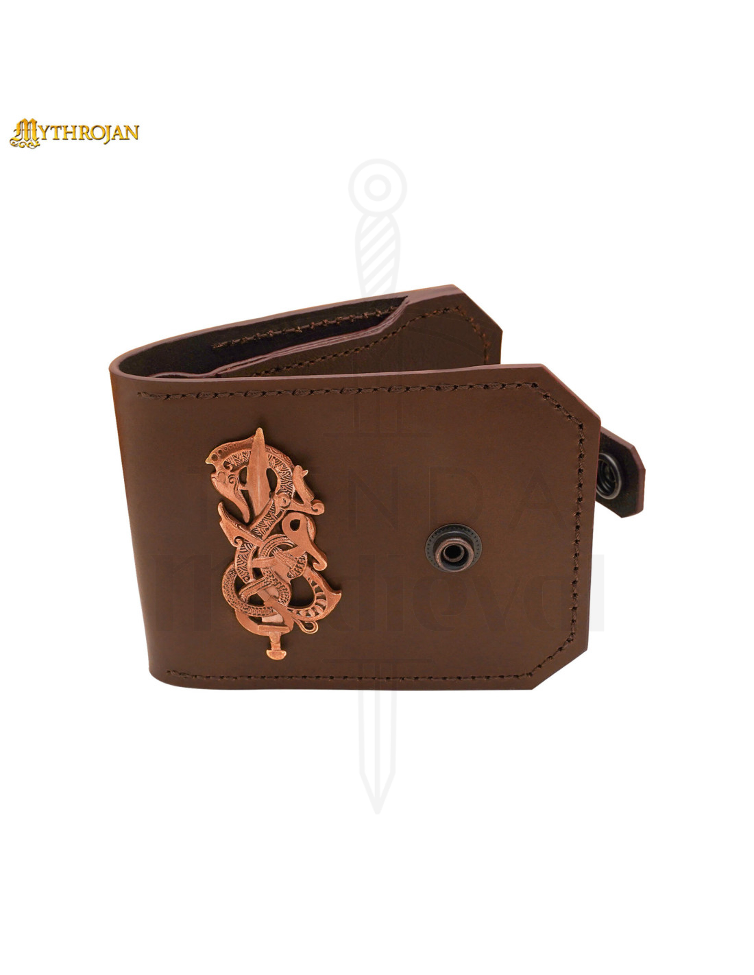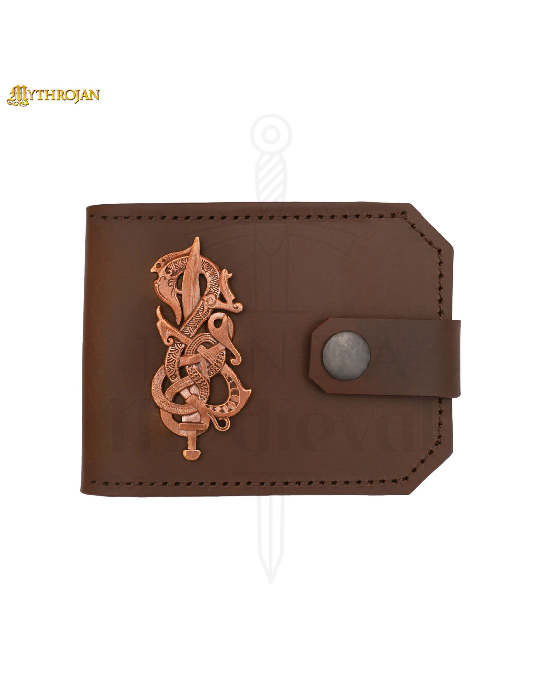 The flap with a metal snap button provides a secure and discreet closure, designed to protect your contents without adding unnecessary bulk. Thanks to its compact size, this leather wallet with cast bronze decoration is perfect both for those seeking a premium option for everyday use and for those who prefer a piece with historical presence at themed events or as a gift for Nordic heritage enthusiasts.