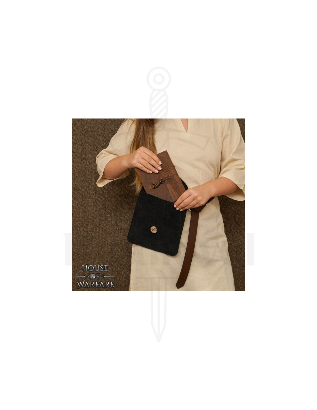 Designed to be worn on the belt, its upper loops allow for a firm attachment, freeing your hands without sacrificing style. Its compact and tidy shape makes it easy to store coins, keys, and small items in order, avoiding bulk and making it easy to find essentials in an instant. The black finish adds versatility, matching both contemporary looks and recreations or events with a historical theme.
