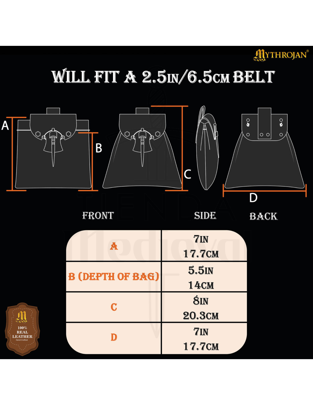 This handmade piece combines hand-woven canvas and premium leather, resulting in a robust and reliable feel every time you wear it. The sober black finish and leather flap offer a rustic yet elegant aesthetic, perfect for complementing both a medieval reenactment outfit and an urban look with character. Designed to keep essentials at hand, it allows for quick access to coins, dice, and small items without sacrificing security.