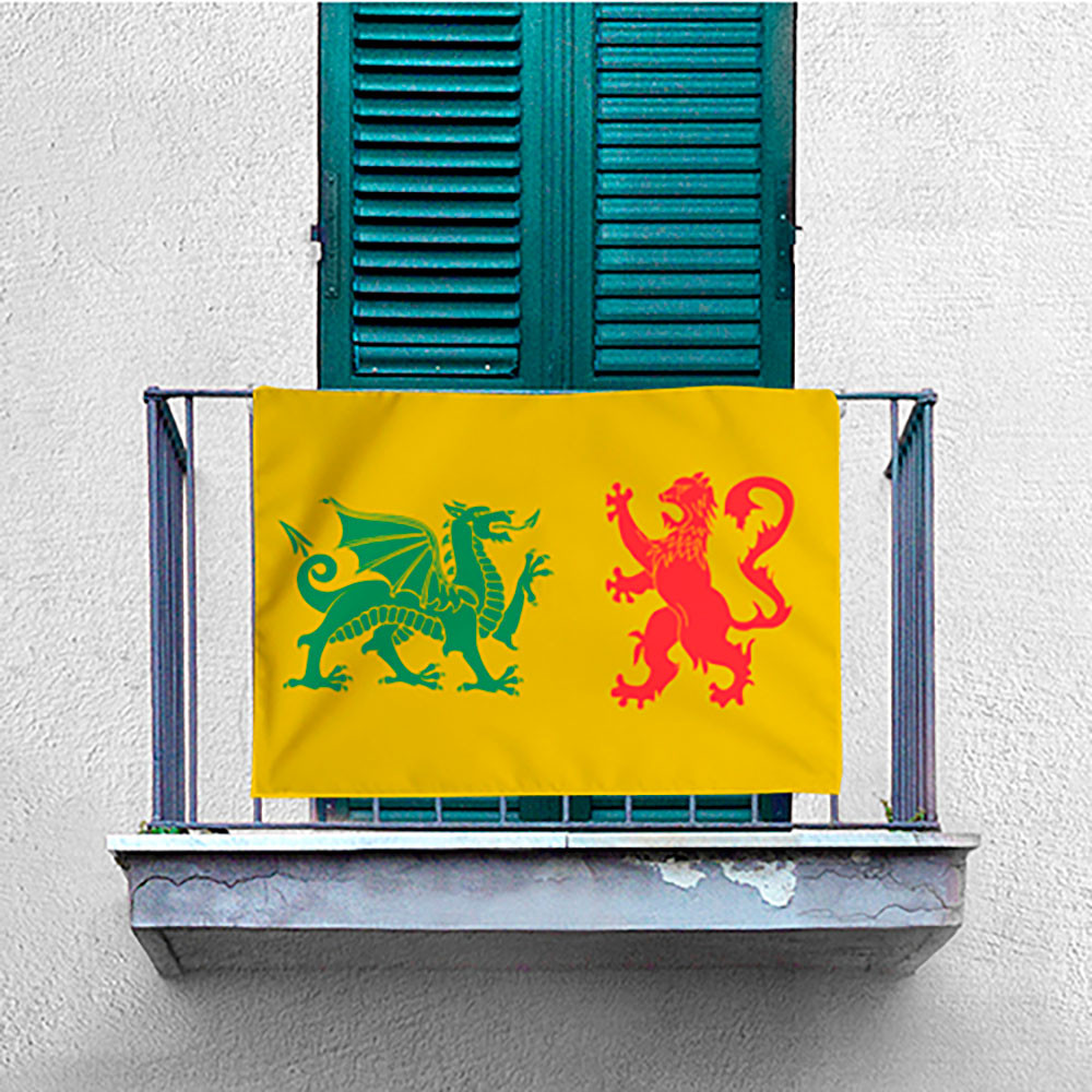 In 1669, the Chair of Lugo presented a document to the General Board of the Kingdom of Galicia proposing a change in the arms of the Suebian Kings, who at that time had their court in the Kingdom. This document was recovered in 1927 by the historian Pérez Constanti. Inspired by these historical references, we have recreated a modern flag with a golden field on which a green dragon and a red lion appear, positioned according to European heraldry. The flag of the Swabian Dynasty of the Gallician Regnum is a symbol that represents Galician history and identity, covering the territories of ancient Gallaecia, including Galicia, northern Portugal, El Bierzo, Asturias and León.