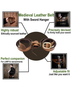 This belt, from the prestigious Lord of Battles brand, is perfect to complement your knightly attire and highlight your authentic medieval spirit. Its elegant and sober design evokes the tradition and nobility of the time. The brown color of the leather gives it a touch of distinction, while remaining versatile and easy to combine.