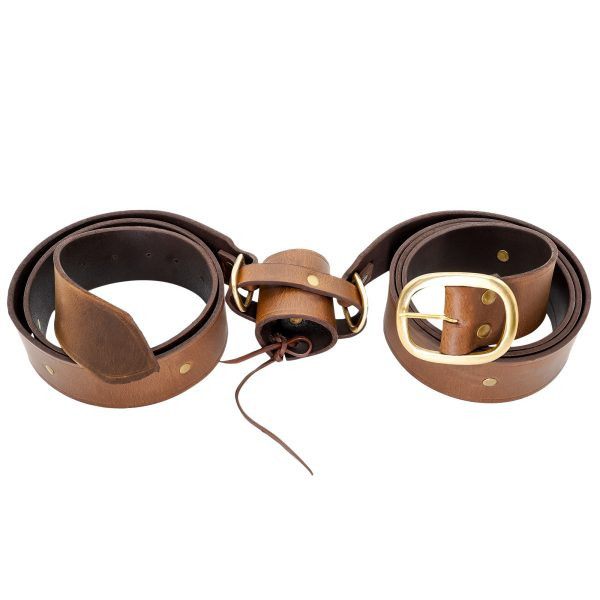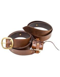 Medieval style brown leather belt with baldric