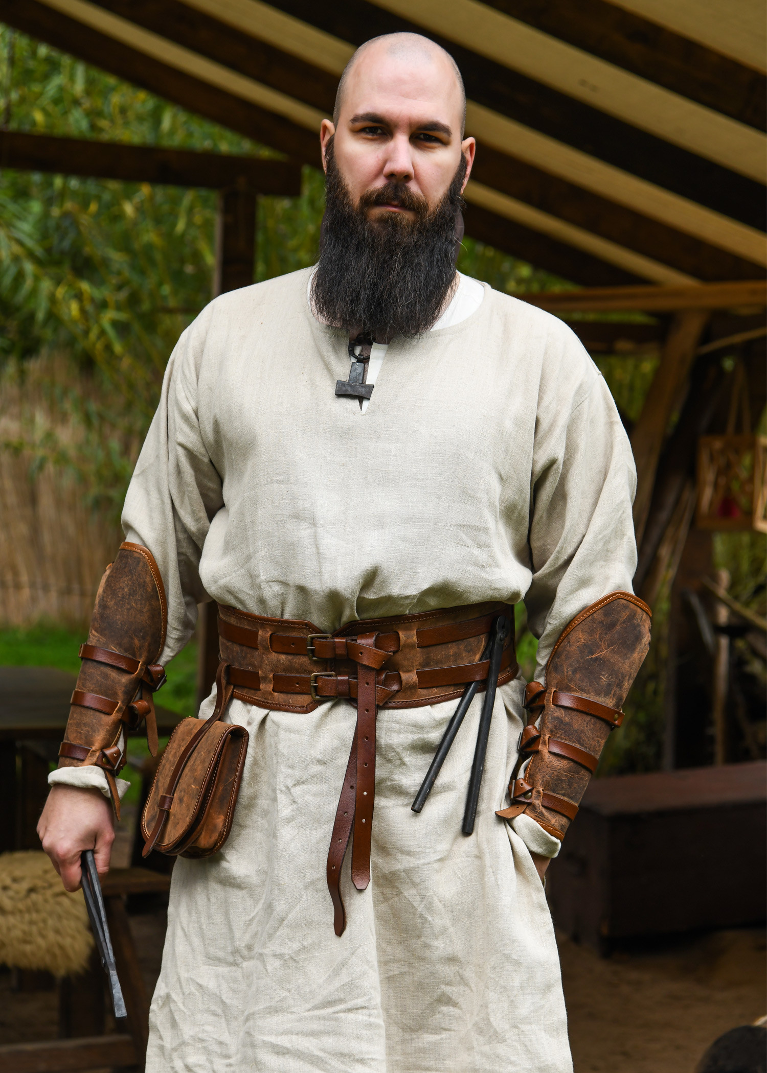 Discover the double leather medieval belt model Sindri in an elegant brown color, designed for those looking to add a touch of authenticity and style to their wardrobe. Inspired by the skill of the blacksmith, this belt is not just an accessory but also a statement of craftsmanship.