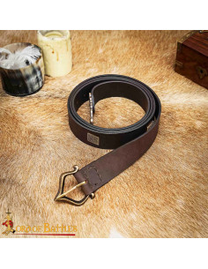 Imagine fastening around your waist a belt in a warm brown tone that effortlessly adds character, thanks to its construction in durable and soft-to-the-touch leather. The brass buckle with an antique finish adds a very special detail, evoking the historic atmosphere of the Renaissance, while ensuring a firm and lasting hold. Every time you wear it, you'll feel the comfort of a design made to fit perfectly without sacrificing the rustic and sophisticated air that makes a difference.