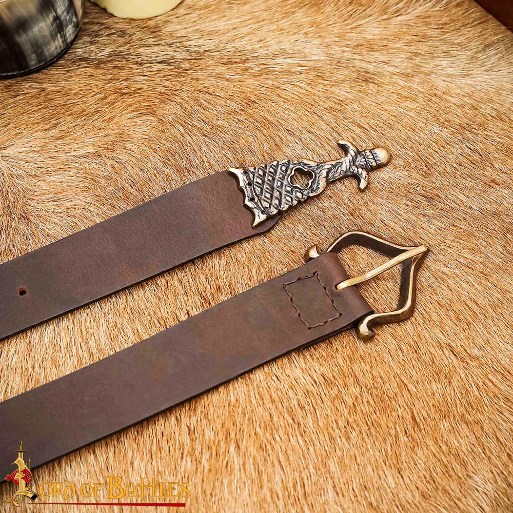 Renaissance Medieval Belt with Brass Buckle, Brown Color
