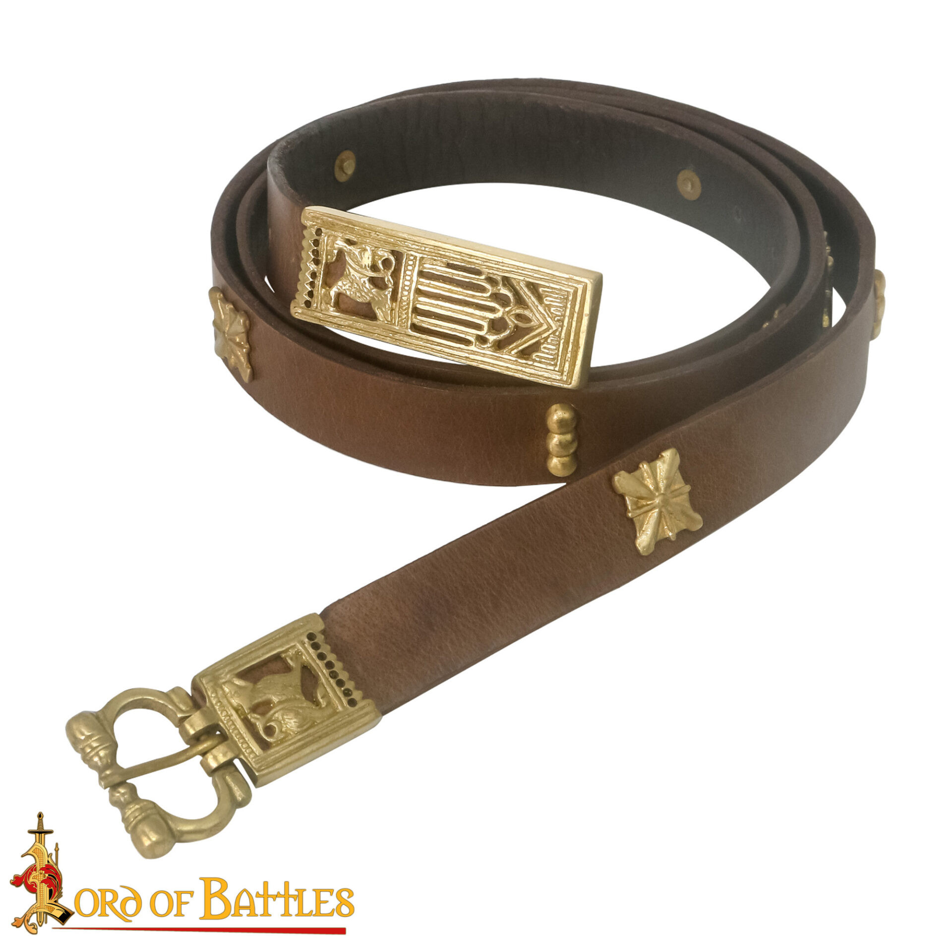 Inquiry about Medieval Brown Leather Belt with Brass Details, Gothic Style