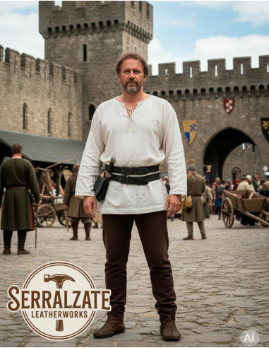 If you wish to purchase the double removable medieval leather belt, black, you are investing in a unique handcrafted piece designed to last and stand out. Add an elegant, functional, and solidly made solution to your wardrobe, ready to accompany you at events, recreations, or in daily life with a touch of distinction.