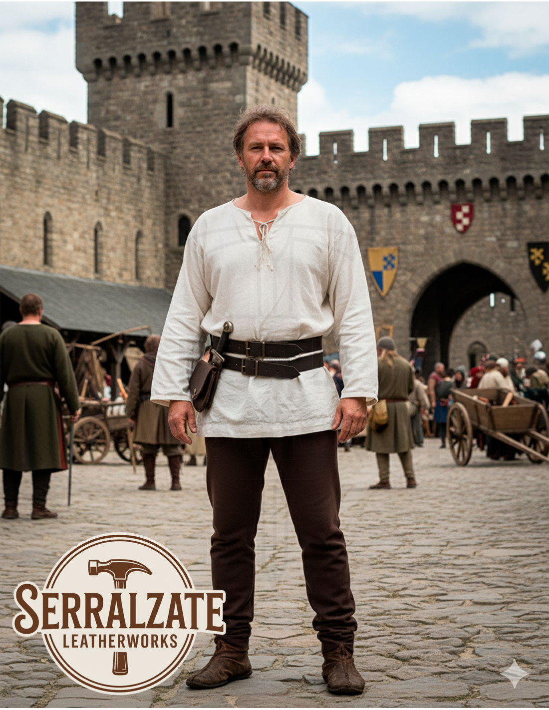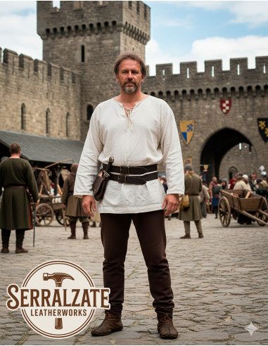 If you wish to purchase a double removable medieval leather belt in dark brown, you are choosing a unique handcrafted piece designed to last and stand out. Add an elegant, functional, and solidly crafted item to your wardrobe, ready to accompany you to events, reenactments, or your daily life with a touch of distinction.