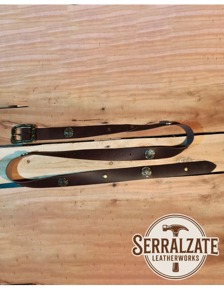 Made in Spain, each belt reflects tradition and skill in its finish, offering a sense of a product made to last. The natural texture of the wood in the presentation, along with the worked-looking metal, underscores its artisanal character, perfect for those seeking pieces with history.