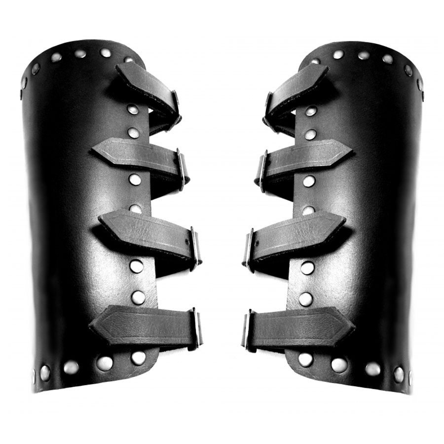 Discover the impressive Mar Medieval Bracelets in black leather with 4 adjustable buckles. These bracelets, made of genuine leather, are the perfect complement for any lover of medieval times. Its unique and original design, decorated with metallic flats, will transport you directly to the Middle Ages.