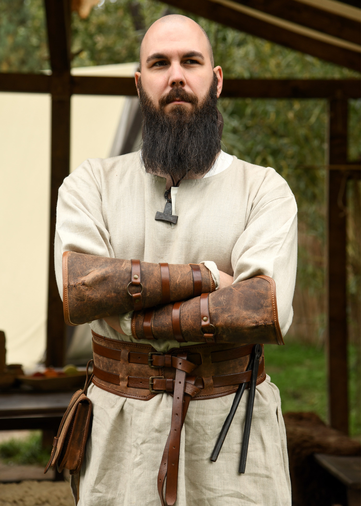 Medieval fighter bracelet in black leather