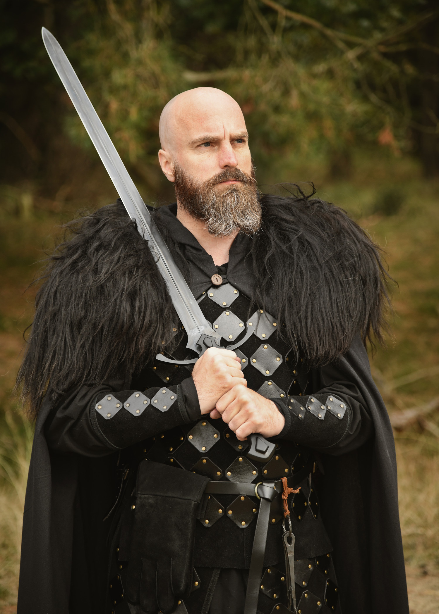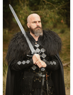 We present the medieval leather bracelet model Vares in elegant black color, a piece designed for those who seek to blend style and comfort in their wardrobe. Inspired by the figure of the legendary Black Knight, this bracelet is ideal for LARP, cosplay, reenactment, or as a sophisticated accessory for a medieval or knight costume.